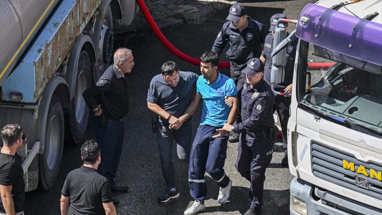 Bazı vatandaşlar duygularına hakim olamayarak yanan binaya doğru koştu. Ekipler vatandaşa müdahale etti.