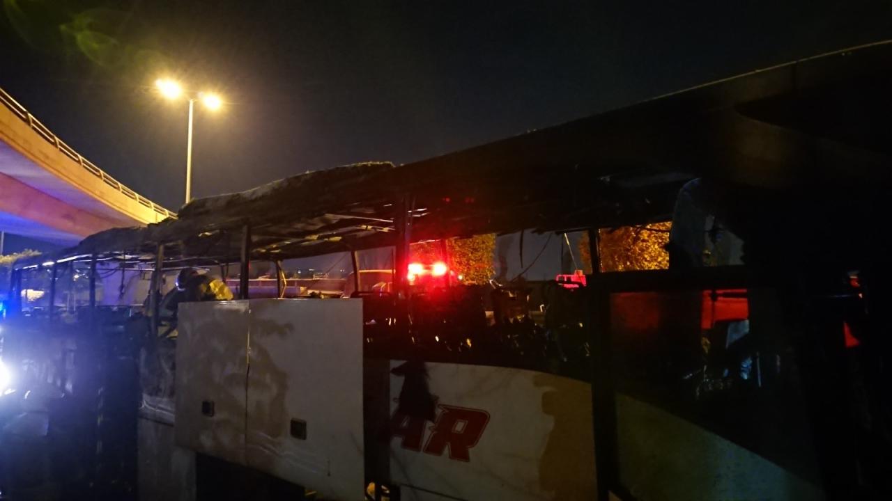 Ankara'da seyir halindeki yolcu otobüsü alev alev yandı