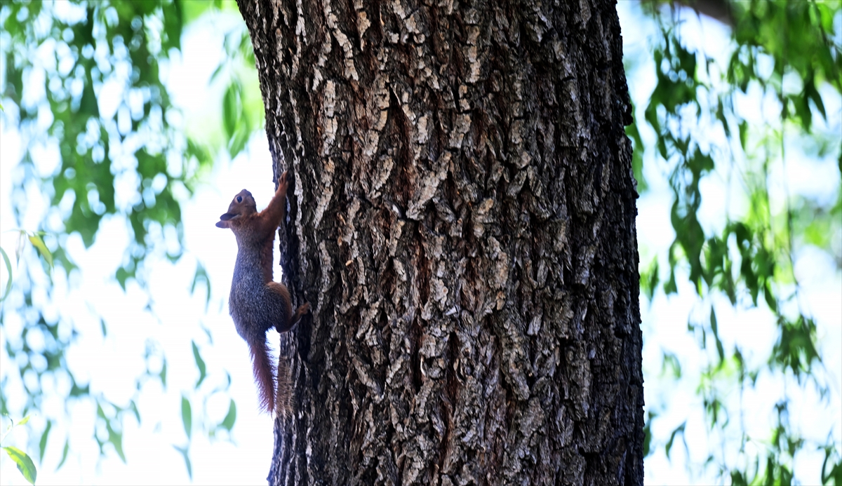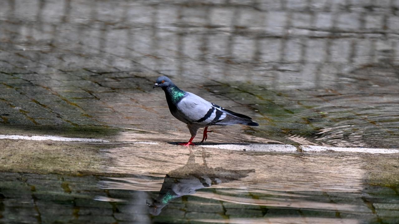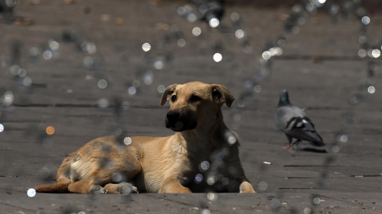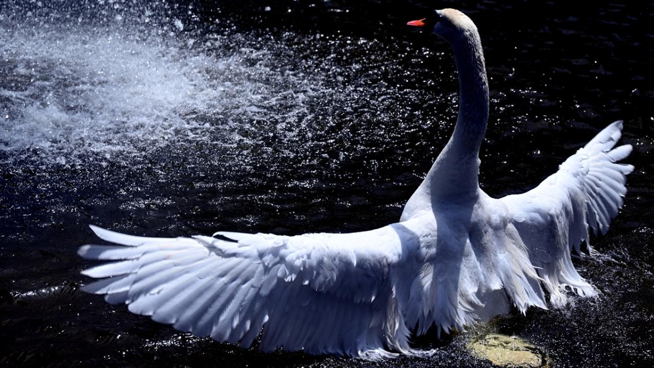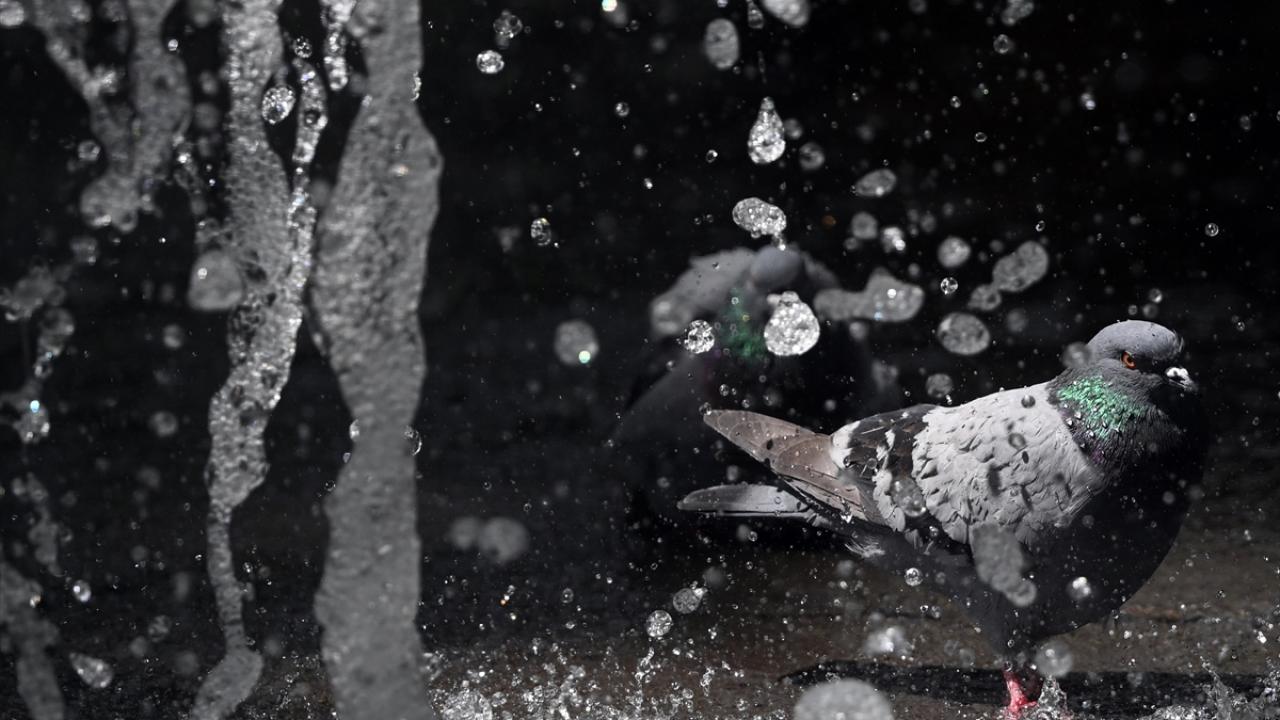 Başkent Ankara`da sıcaktan etkilenen hayvanlar, Kuğulu Park`taki havuzda ve fıskiyelerde serinlemeye çalıştı.