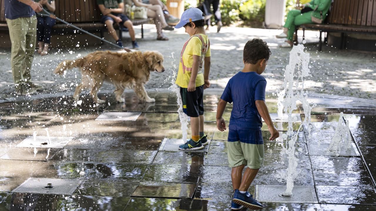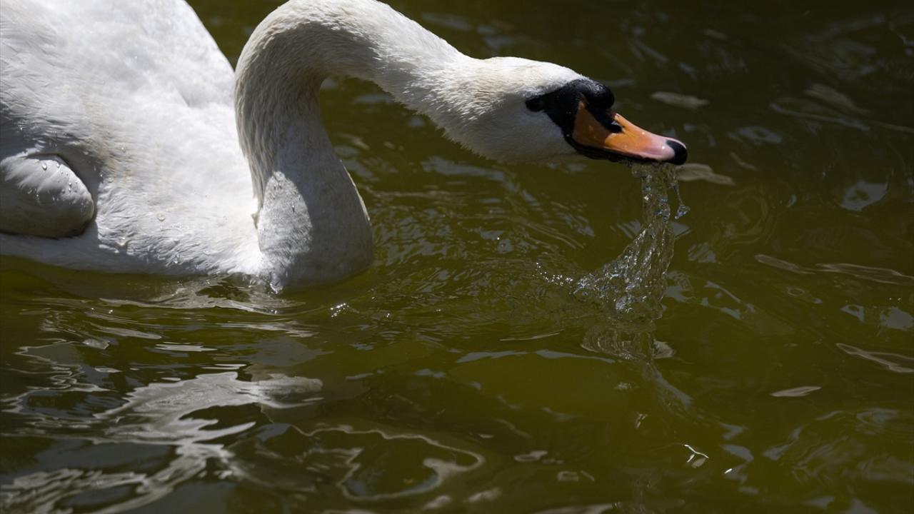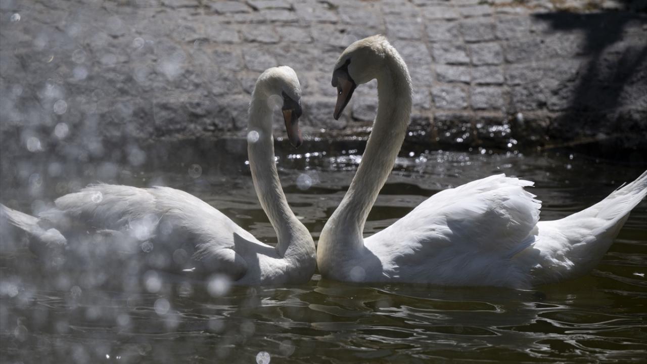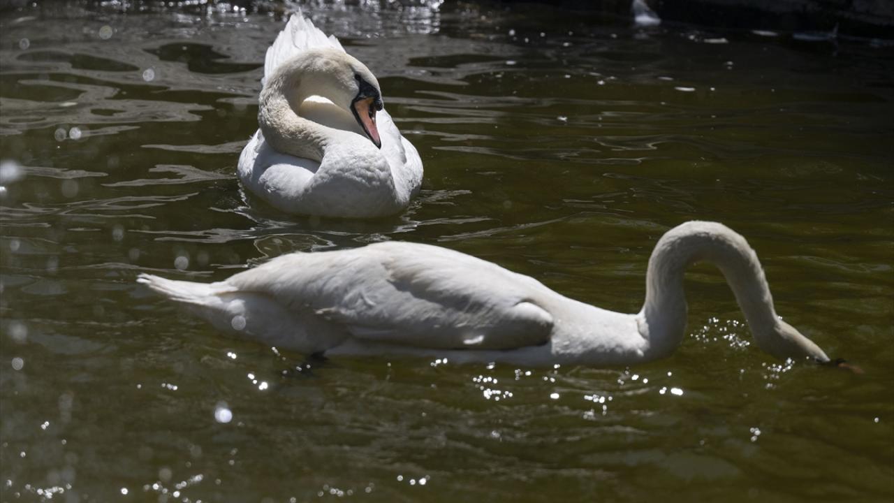 Başkent Ankara'da gün içerisinde sıcak hava dalgası etkili oldu. Kuğulu Park'taki hayvanlar, havuzdaki suyla serinlemeye çalıştı.