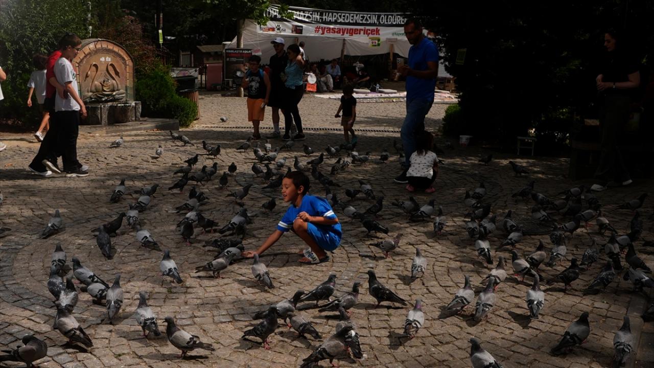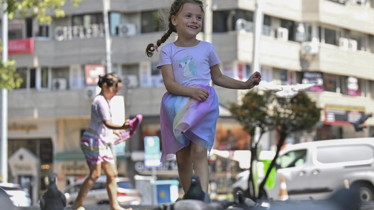 Ankara`da sıcaklık mevsim normallerinin üzerinde seyrederken kentin kalabalık yerlerinden Tunalı Hilmi Caddesi ve Kuğulu Park`ta vatandaşlar ve hayvanlar da sıcak havadan etkilendi.
