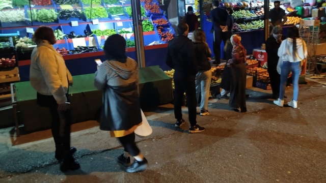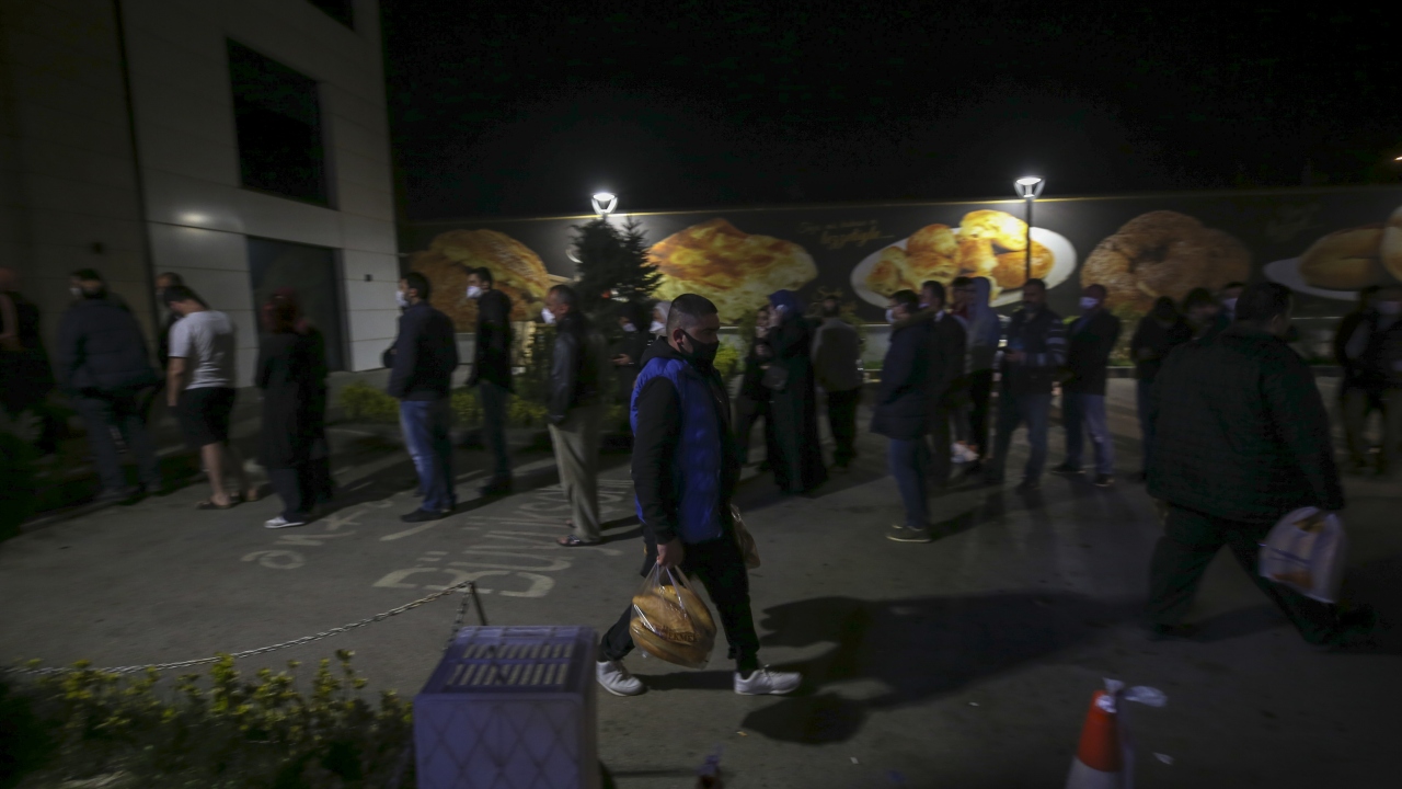 Ankara'da, yeni tip koronavirüs (COVID-19) salgını ile mücadele kapsamında, saat 24.00 itibarıyla başlayacak sokağa çıkma yasağı öncesi alışveriş yapmak isteyenler uzun kuyruklar oluşturdu.