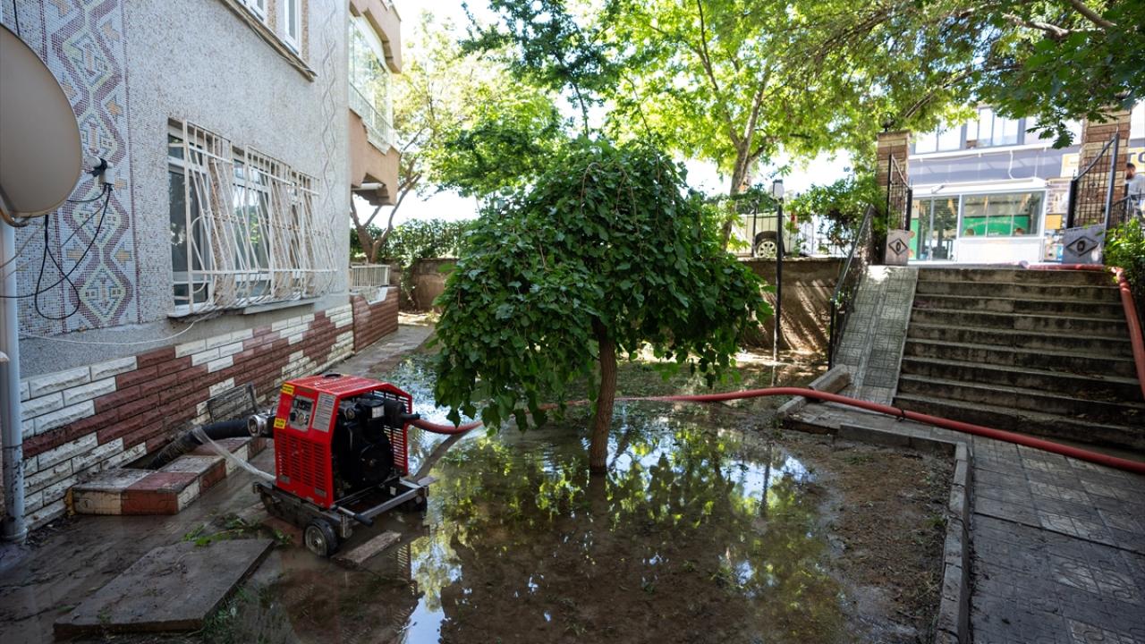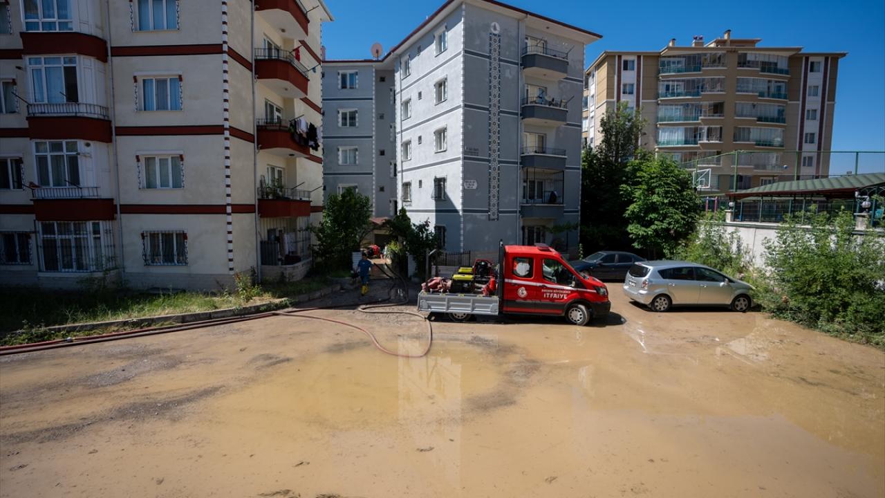 Ankara'da etkili olan sağanakta evlerine su basan vatandaşlar eşyalarını taşırken itfaiye ekipleri ise biriken suyu tahliye etmek için çalışmalarını sürdürüyor.