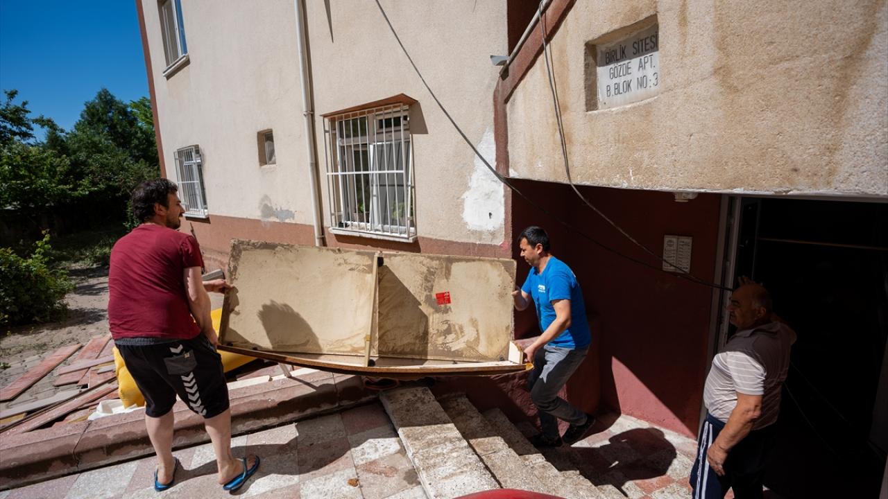 Ankara'da su baskınlarından etkilenen dairelerde temizlik çalışmaları sürüyor
