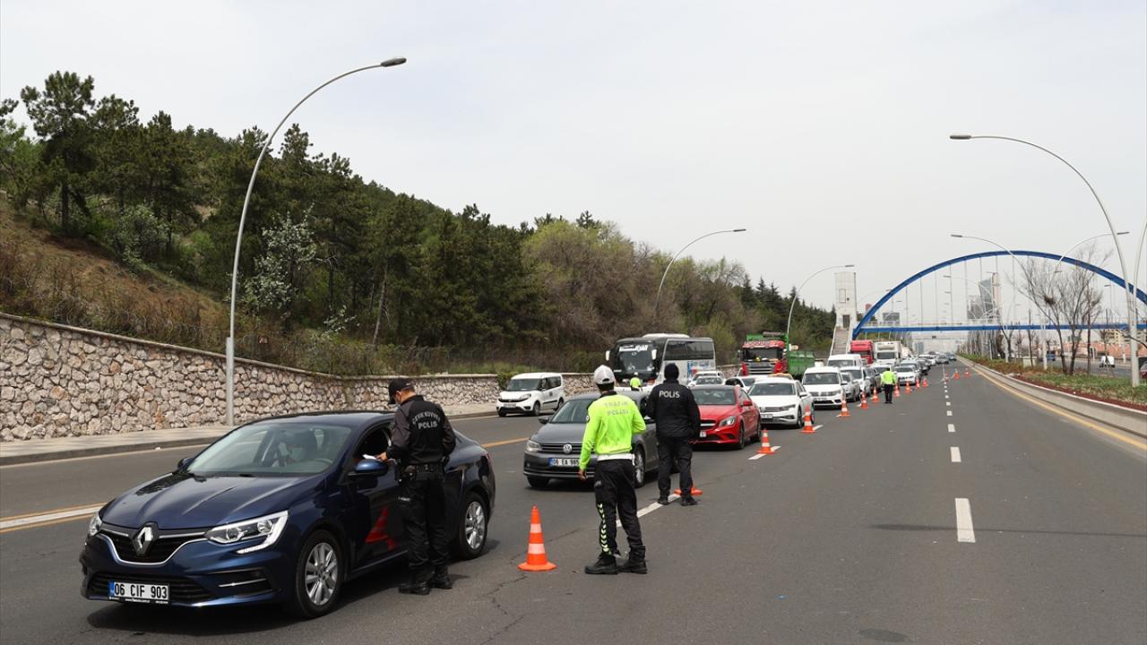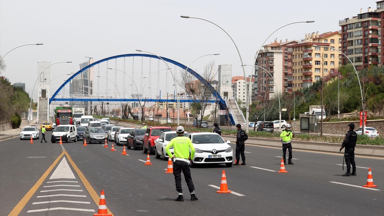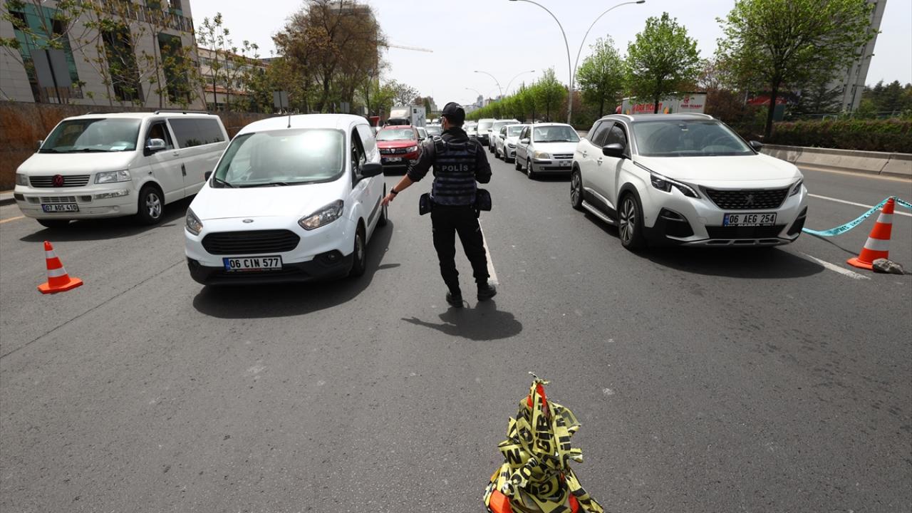Başkentte, Covid-19 tedbirleri kapsamında, 29 Nisan'da başlayan ve 17 Mayıs Pazartesi saat 05.00'te sona erecek tam kapanma önlemleri kapsamında kentin birçok noktasında denetim gerçekleştiren polis ekipleri, dışarıda olanların izin belgelerini kontrol etti.