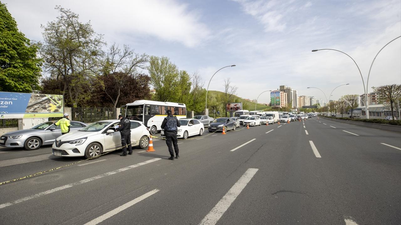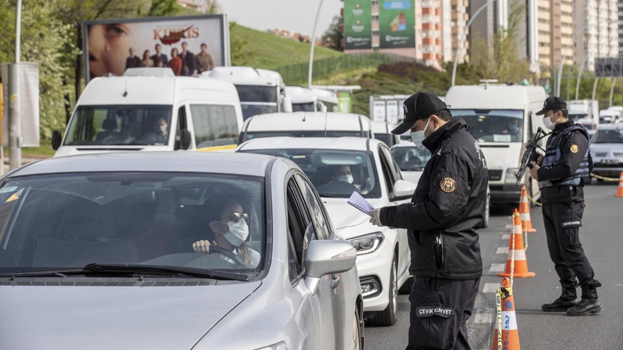 Salgın tedbirleri kapsamında tam kapanmanın uygulanmaya başlandığı ilk gün, Ankara'da polis ekiplerince oluşturulan kontrol noktalarında uzun araç kuyrukları oluştu.