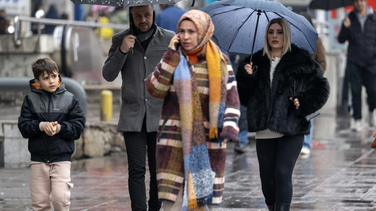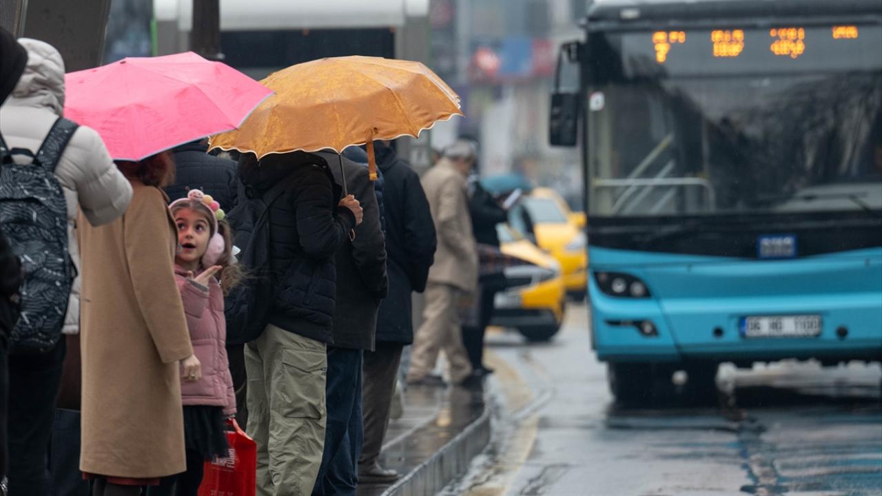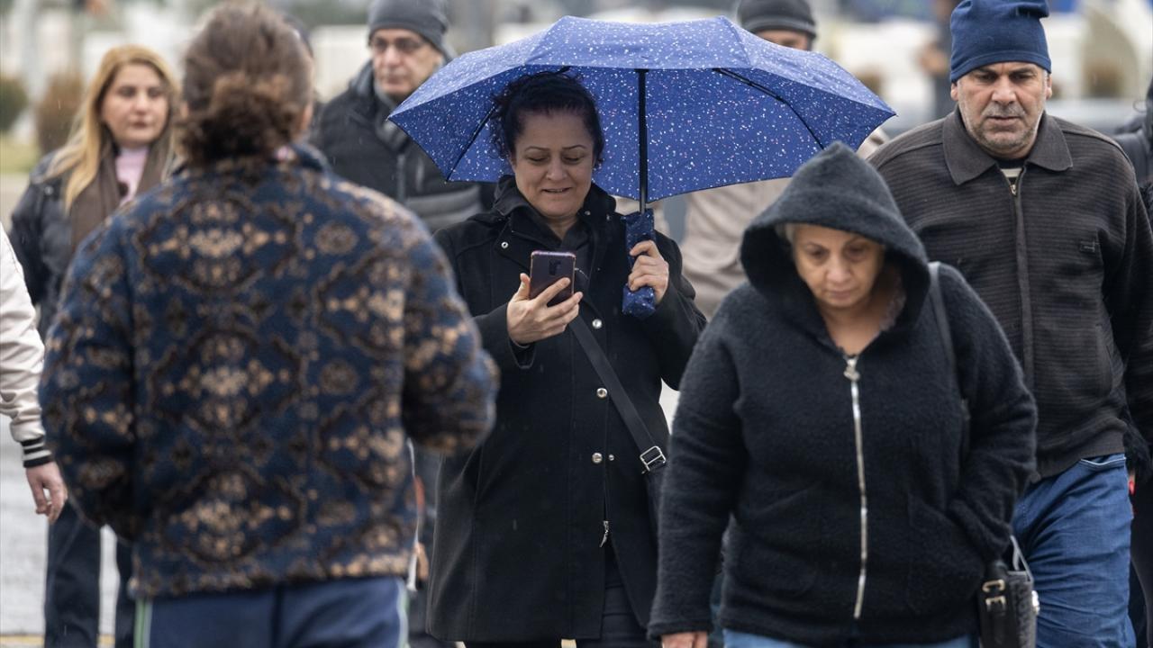 Bazı vatandaşlar, şemsiyelerle yağmurdan korunmaya çalıştı.