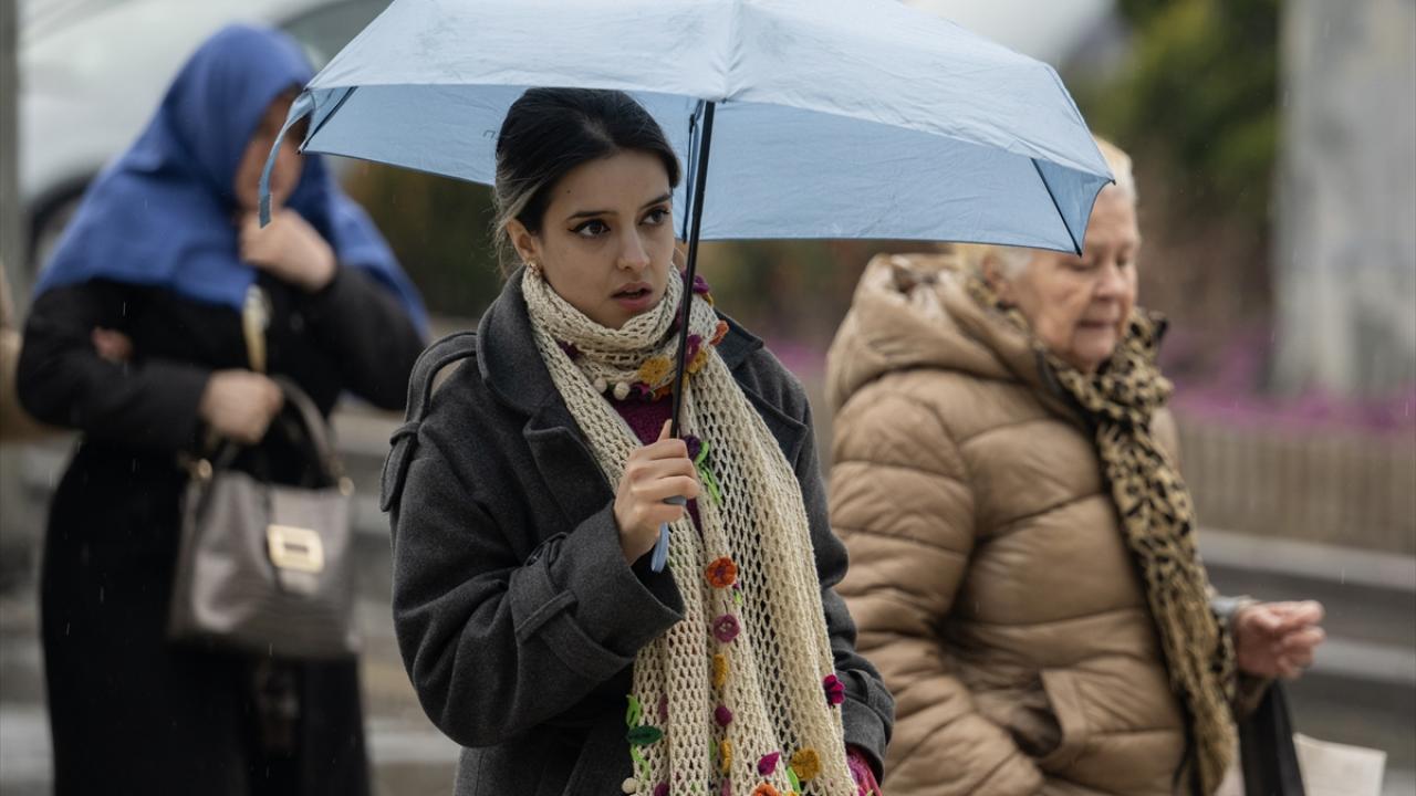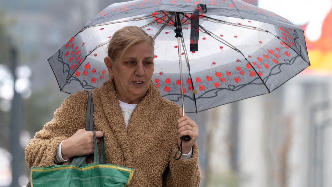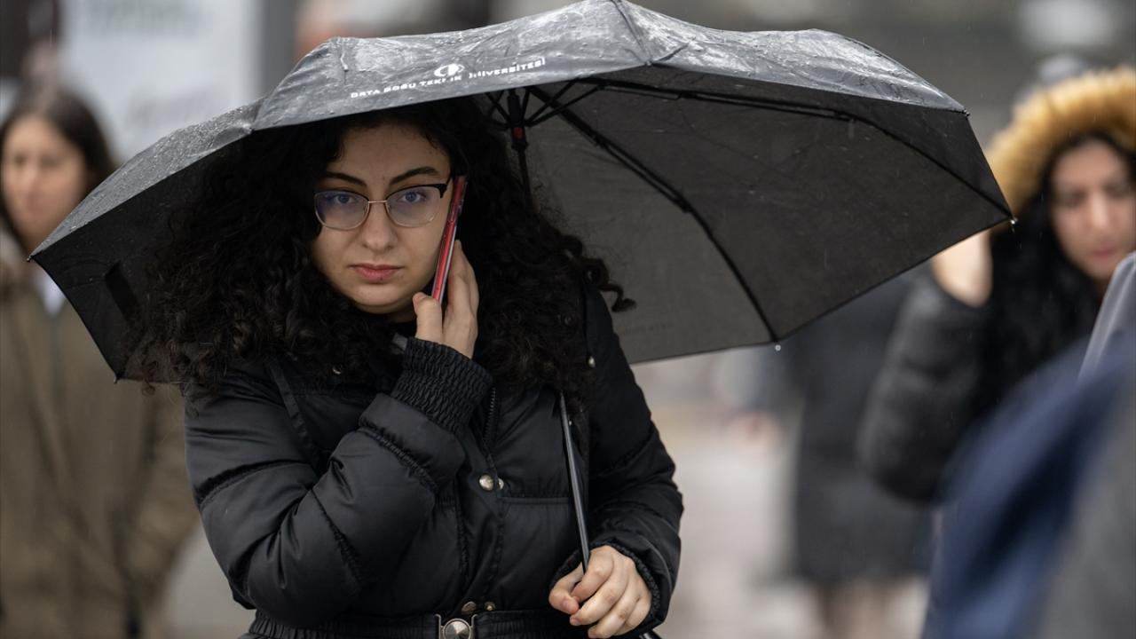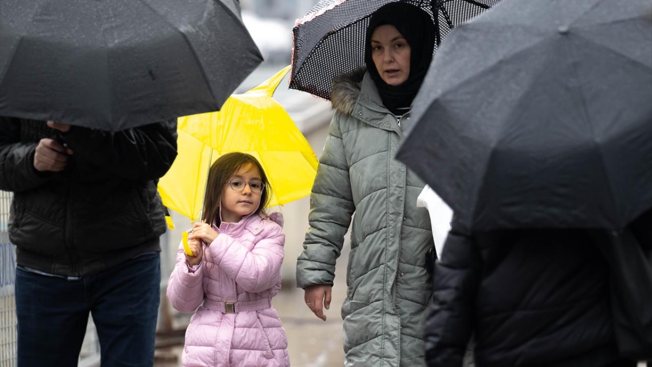 Bazı vatandaşlar, şemsiyelerle yağmurdan korunmaya çalıştı.