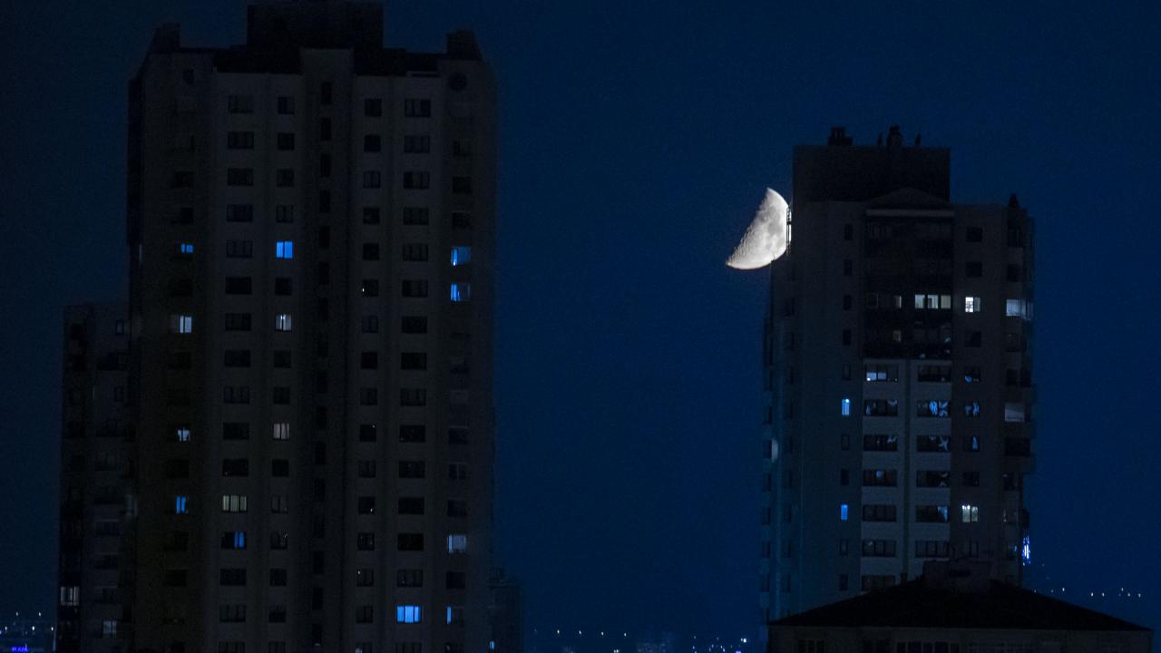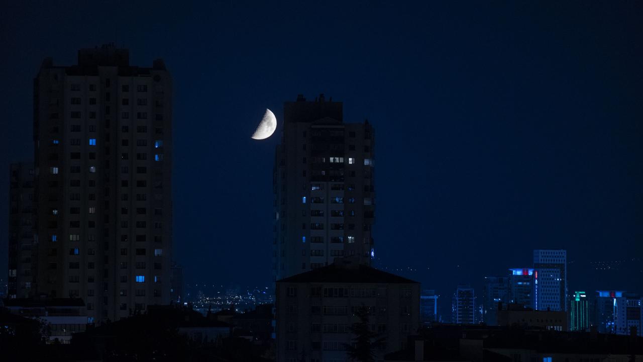Ankara'da akşam saatlerinde gökyüzünde beliren yarım ay güzel görüntüler oluşturdu.