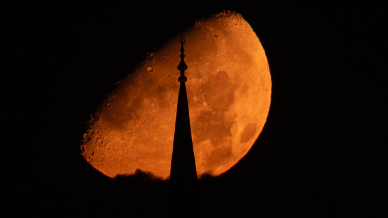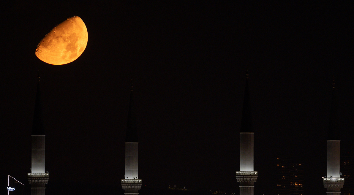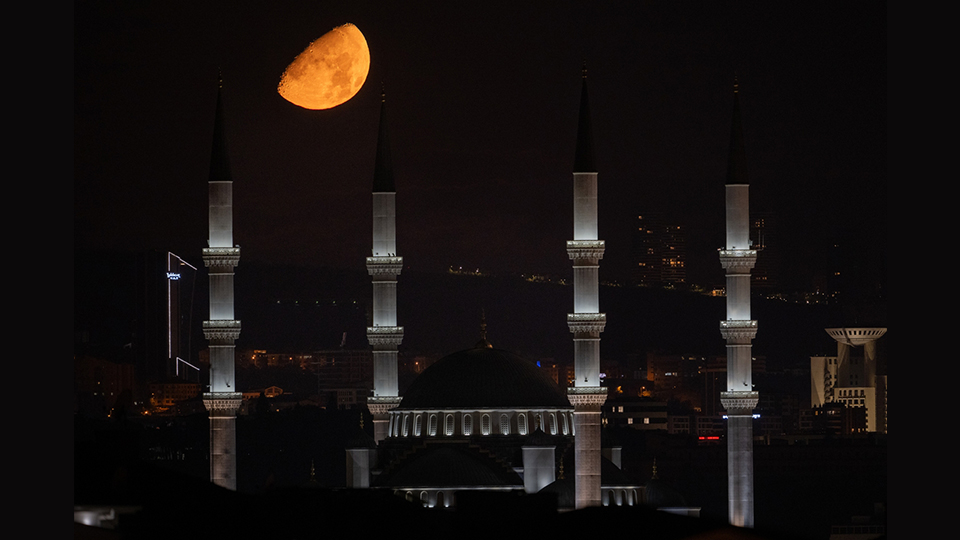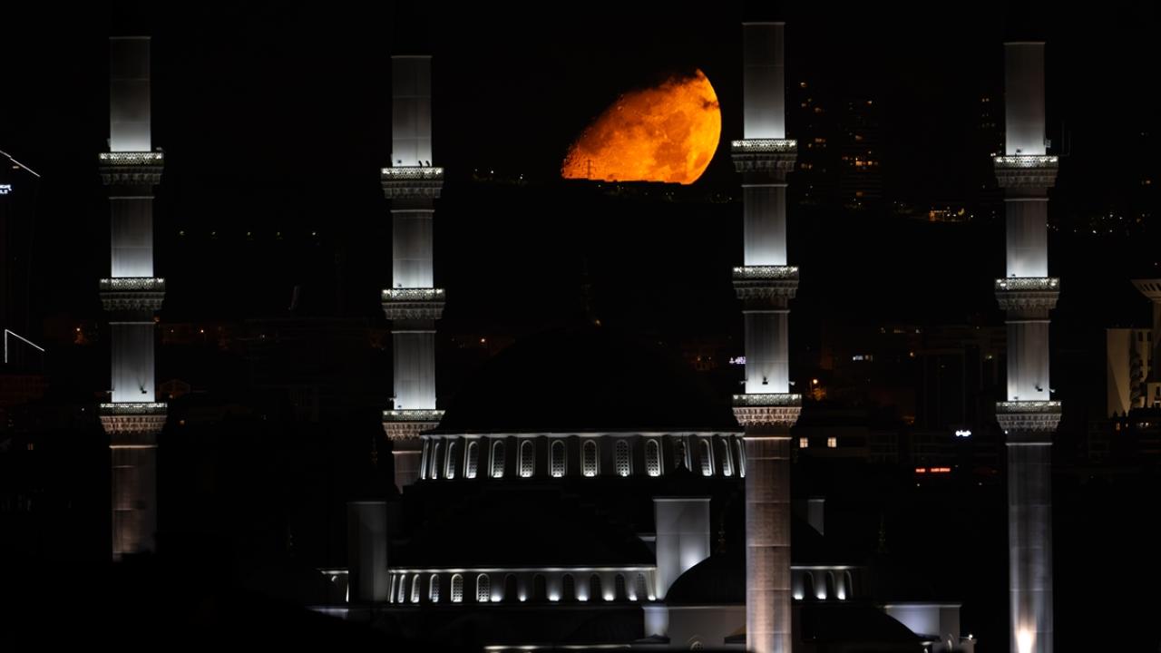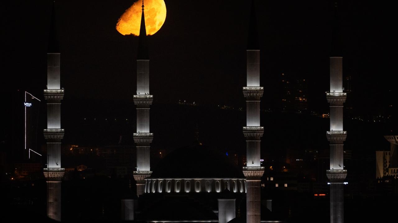 Ankara'da akşam saatlerinde gökyüzünde beliren yarım ay, Kocatepe Camii ile güzel görüntüler oluşturdu.