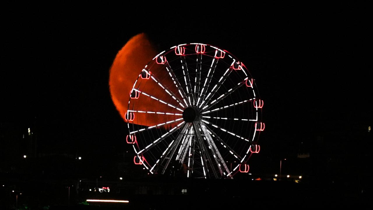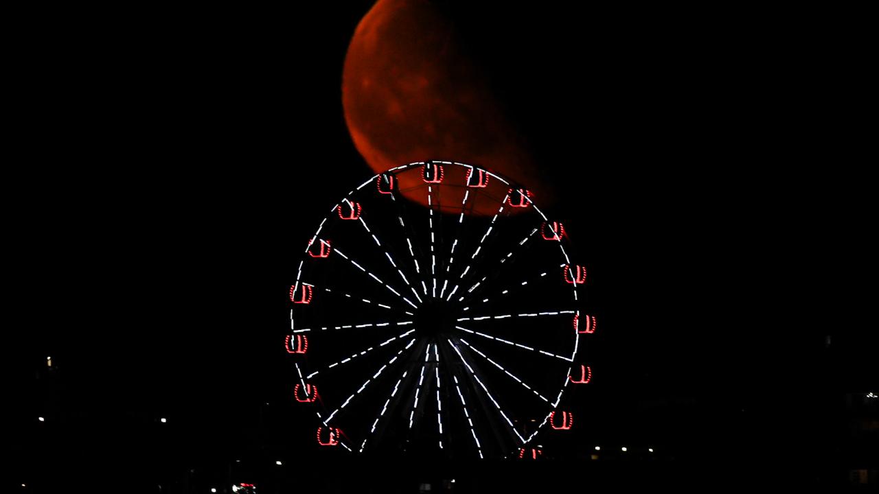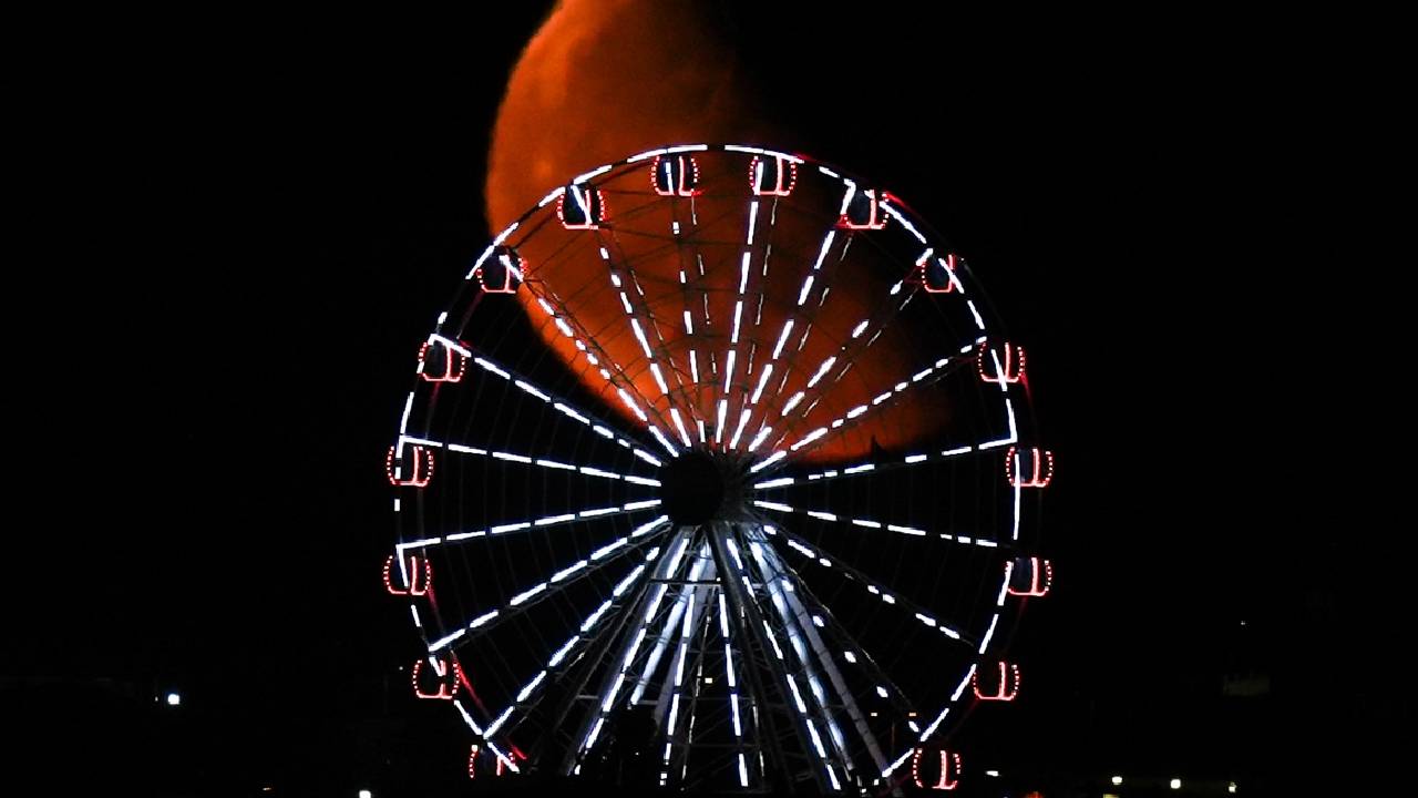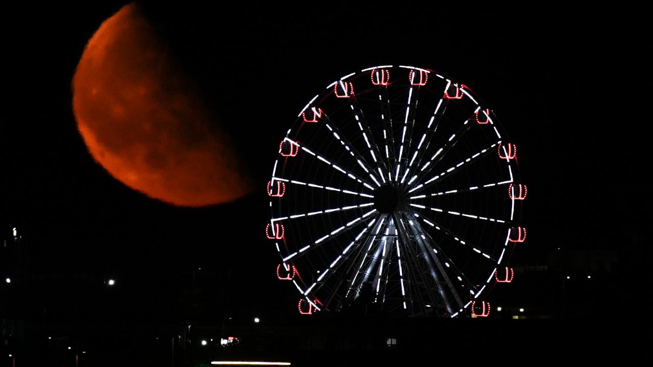 Ankara'da akşam saatlerinde beliren yarım ay, Gölbaşı ilçesinde bulunan dönme dolap ile görüntülendi.
