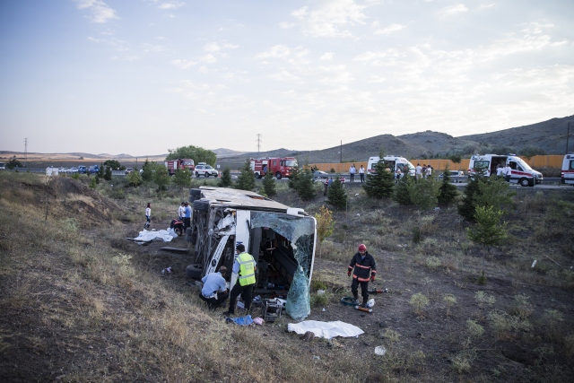 Ankara'da yolcu otobüsünün şarampole devrilmesi sonucu 4 kişi öldü, 18 kişi yaralandı. Kazanın haber verilmesi üzerine olay yerine çok sayıda sağlık ve itfaiye ekibi sevk edildi. Ekiplerin yaptıkları ilk müdahale sonucu 44 yolcunun bulunduğu otobüsten 4 kişinin cesedi çıkarılırken, yaralanan 18 kişi ambulanslarla hastanelere sevk edildi.