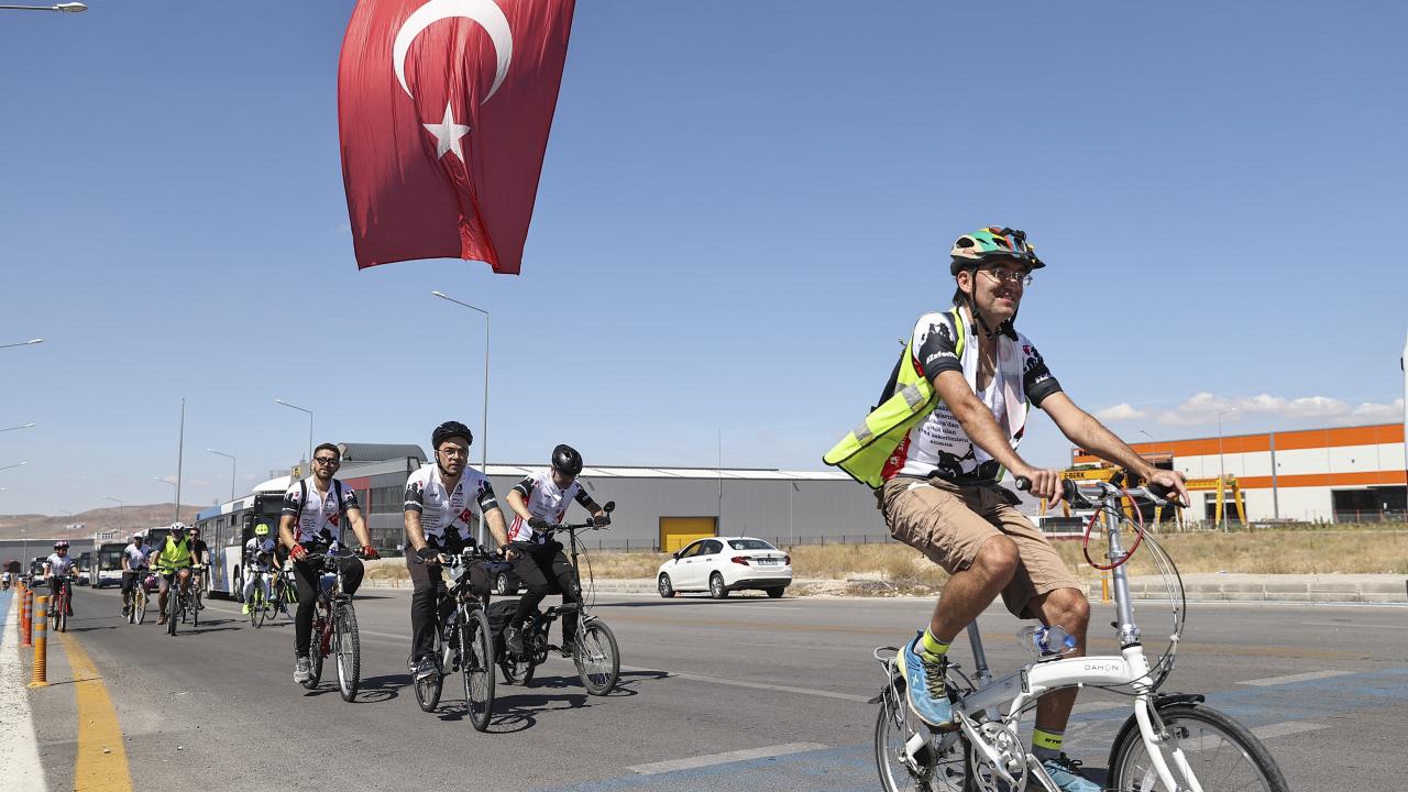Ankara'da "Zafer ayı" eylül için 300 bisikletçi 60 kilometre pedal çevirdi