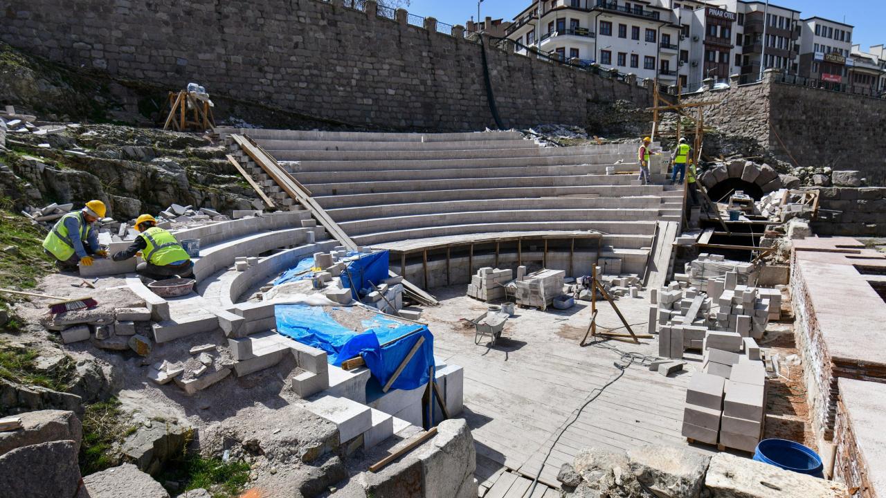 Ankara Büyükşehir Belediyesinin kentin en önemli tarihi eserlerinden biri olan Antik Roma Tiyatrosu'nda başlattığı restorasyon çalışmaları büyük oranda tamamlandı.