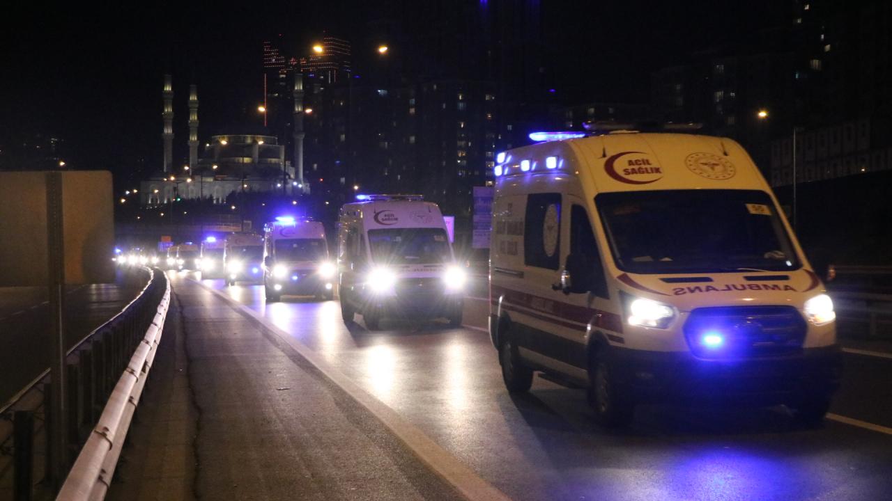 Öte yandan İstanbul`a giriş yapan ambulansların 15 Temmuz Şehitler Köprüsü`nden geçiş yaptığı anlar havadan da görüntülendi.