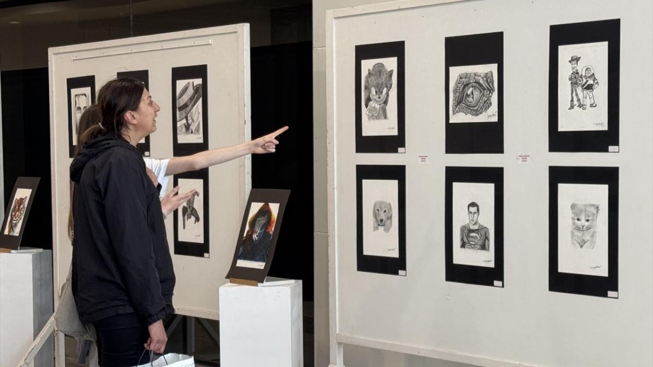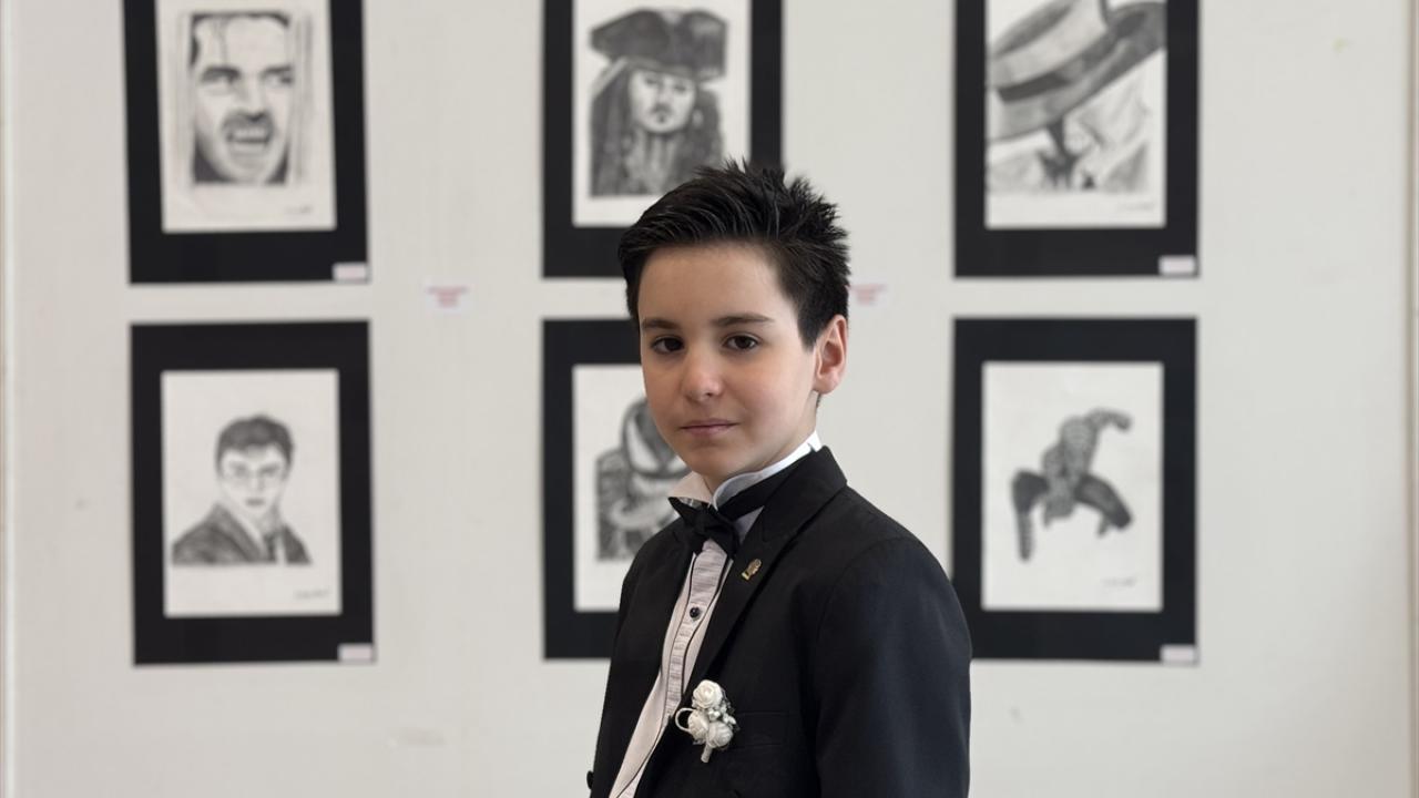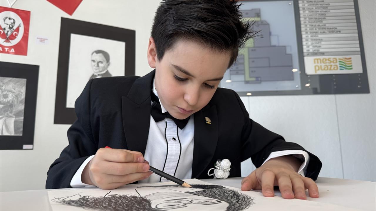 Kara kalem, kuru boya ve pastel gibi çeşitli tekniklerle kısa sürede gerçekçi portreler çizen 9 yaşındaki Mustafa Arda Sapmaztürk, ilk kişisel sergisini açtı.