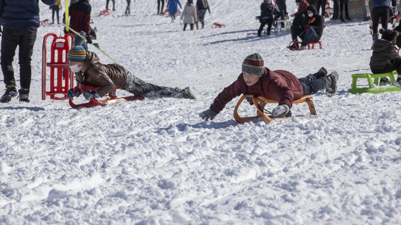 Ankara’nın Elmadağ ilçesindeki bulunan kayak merkezinde, karın keyfini çıkaran insanlar gülümseten görüntüler oluşturdu.