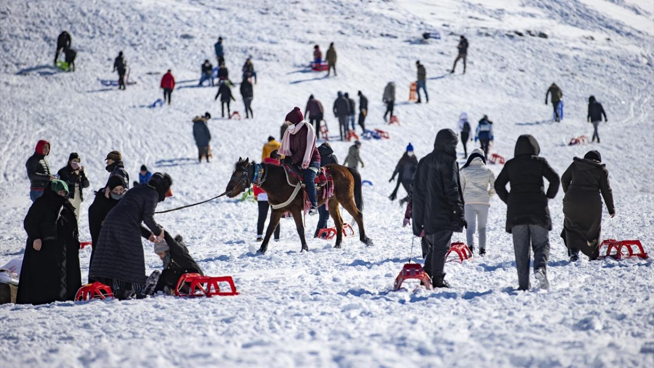 Elmadağ Kayak Merkezi’ne gelen her yaştan insan hem kızakla kayarak hem de ata binerek keyifli anlar yaşadı.