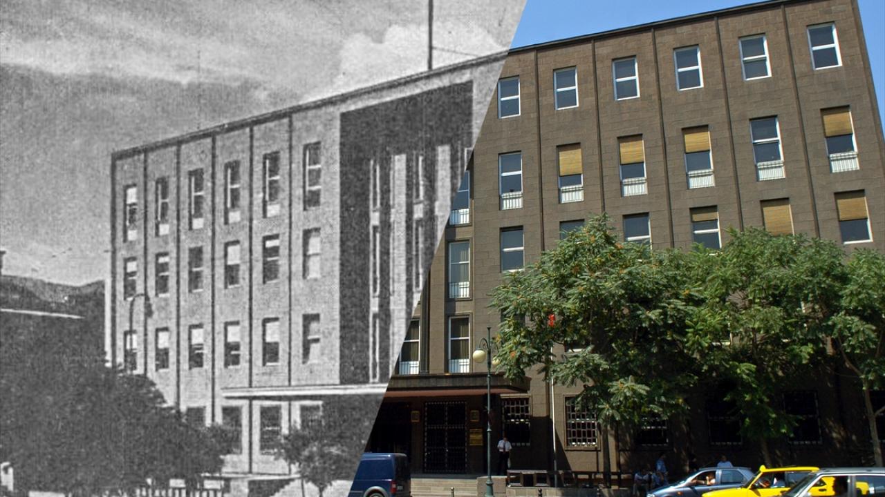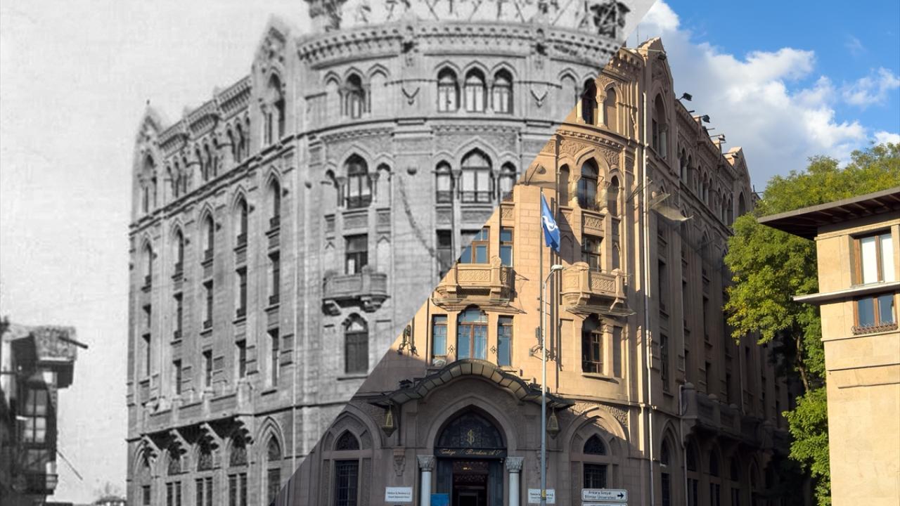 Avusturyalı mimar Clemens Holzmeister`in çizimini yaptığı yapı, günümüzdeki renkli fotoğrafta ise kültürel yaşamın bir parçası olarak öne çıkıyor.