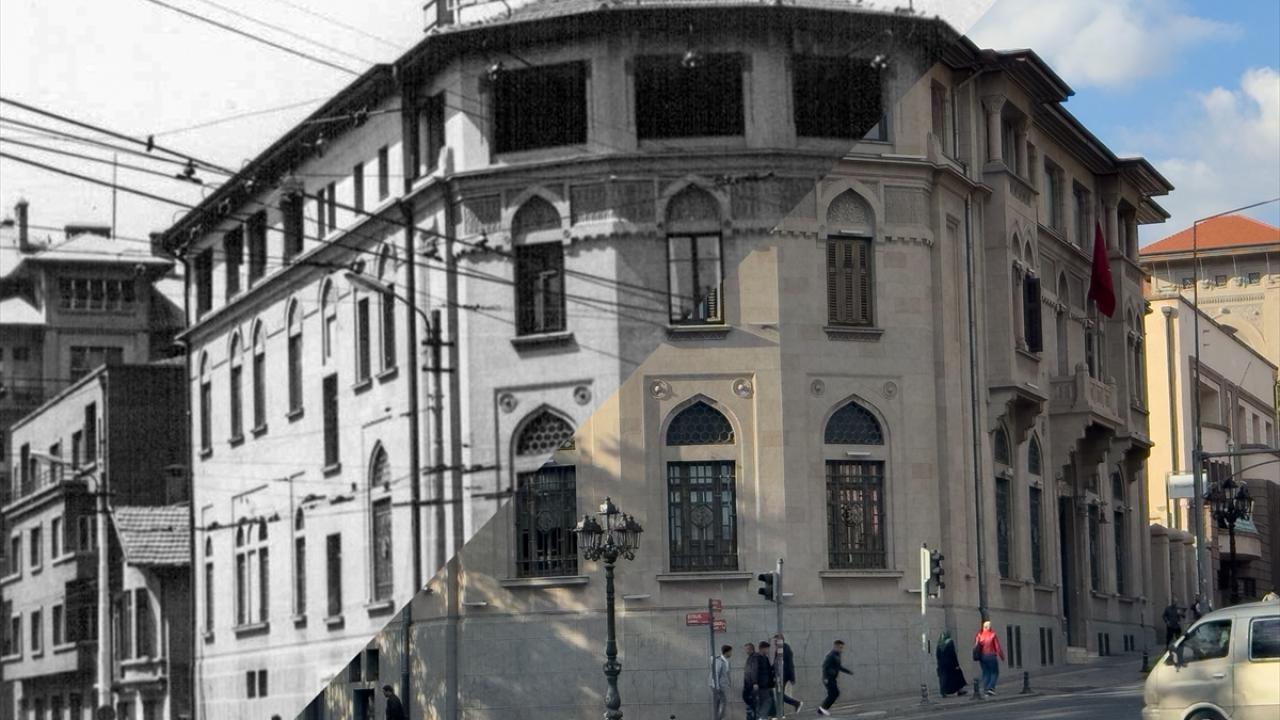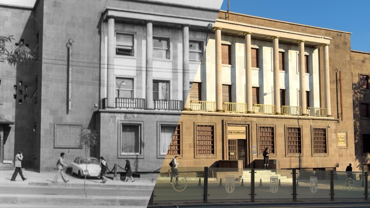 Atatürk Bulvarı`nda bulunan PTT Pul Müzesi ise 1940 tarihli siyah-beyaz fotoğrafta Emlak ve Eytam Bankası tarafından kullanıldığı haliyle yer alıyor.
