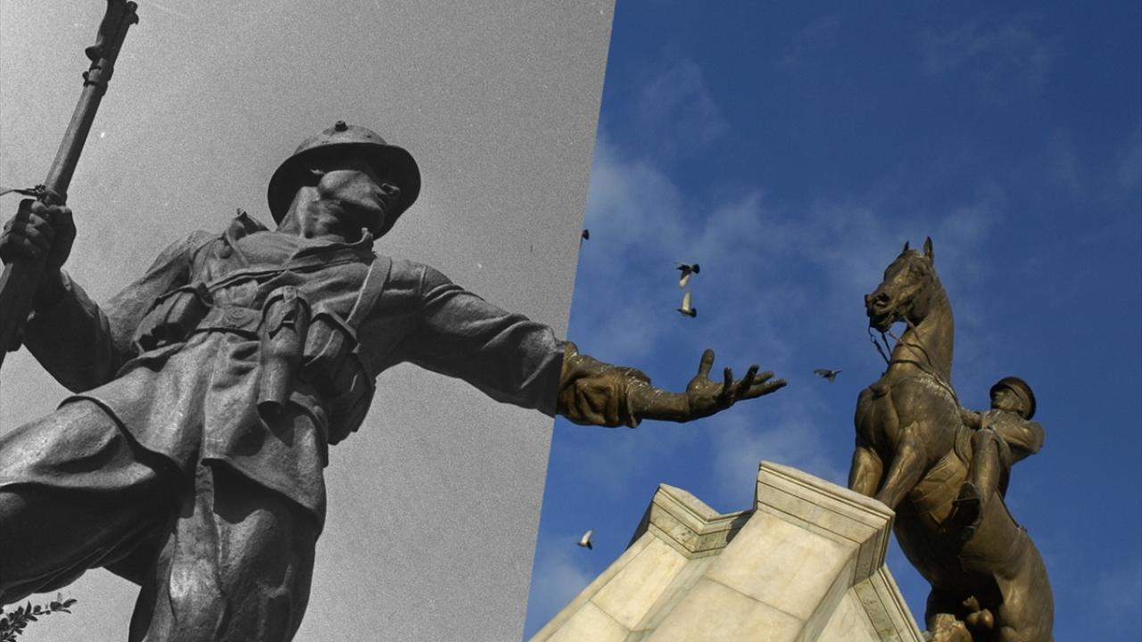 Kore Savaşı`nda şehit düşen Türk askerlerinin anısına yapılan Kore`de Savaşan Türk Askerleri Anıtı, 1973 tarihli siyah-beyaz arşiv fotoğrafı ve günümüz renkli görüntüsünde benzerliğini koruyor.