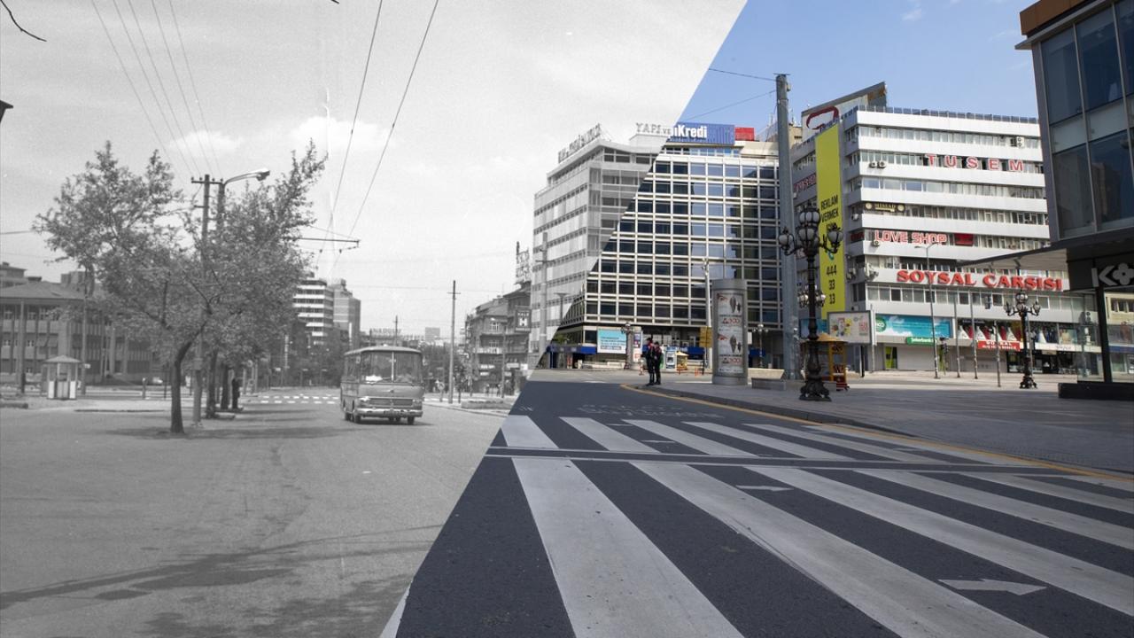 13 Ekim 1923'te başkent ilan edilen Ankara'nın yıllar içindeki değişimi, Anadolu Ajansı'nın (AA) siyah-beyaz arşiv fotoğrafları günümüz renkli fotoğraflarıyla birleştirilerek görsel bir bütünlük içinde yeniden kurgulandı.