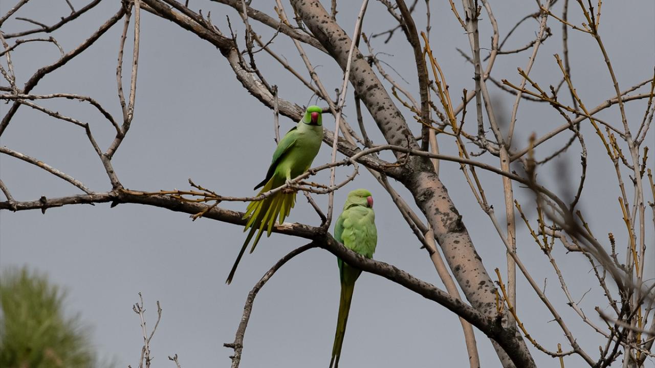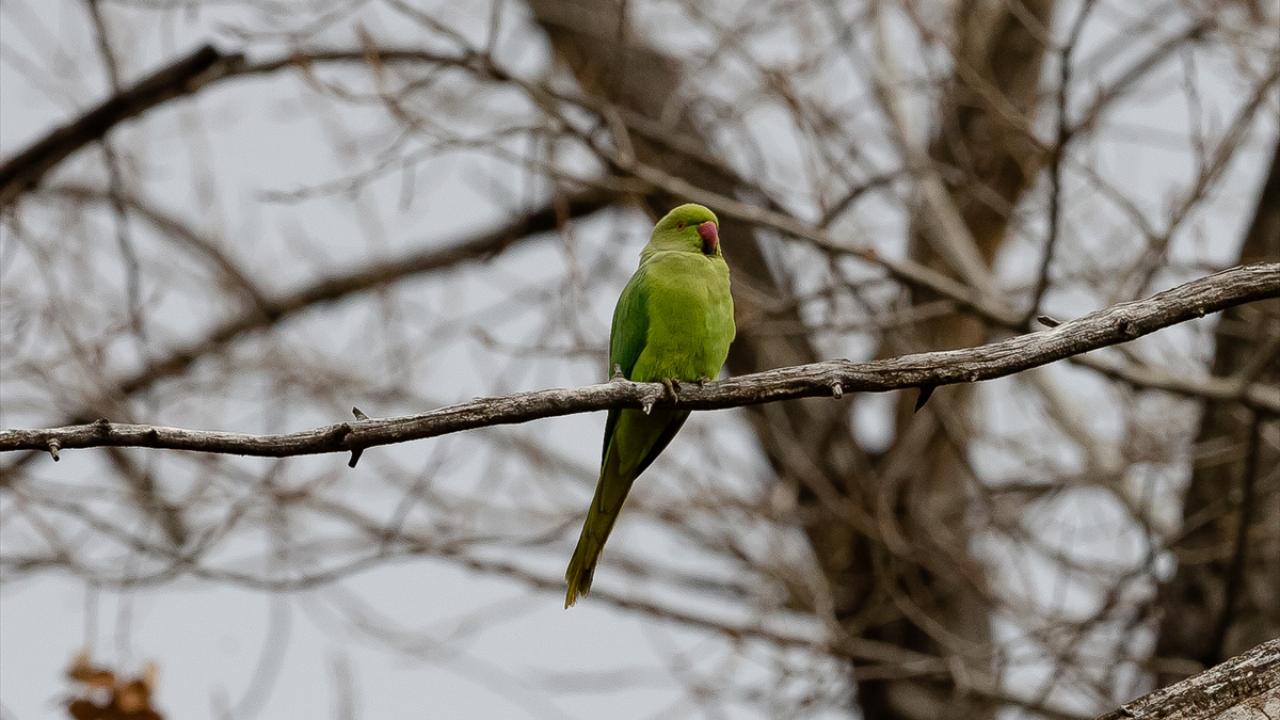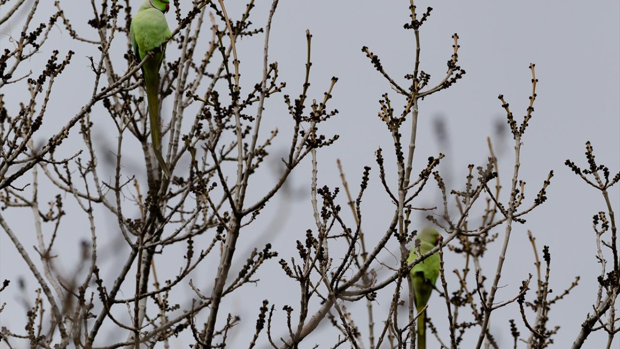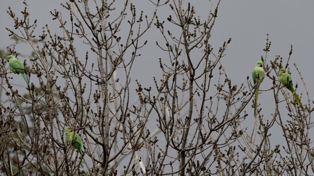 Ankara'nın çeşitli yerlerinde görülen ve kökeni tropikal Asya ile Afrika olan yeşil papağanlar, sessiz ve sakin ağaçlık yeşil alanları tercih ediyor.