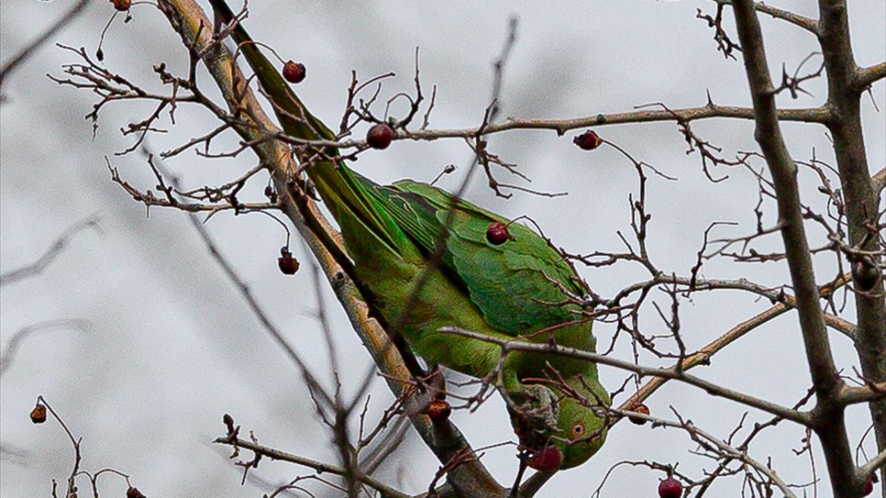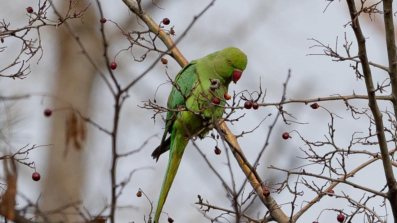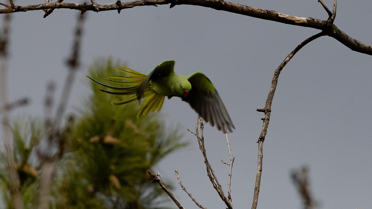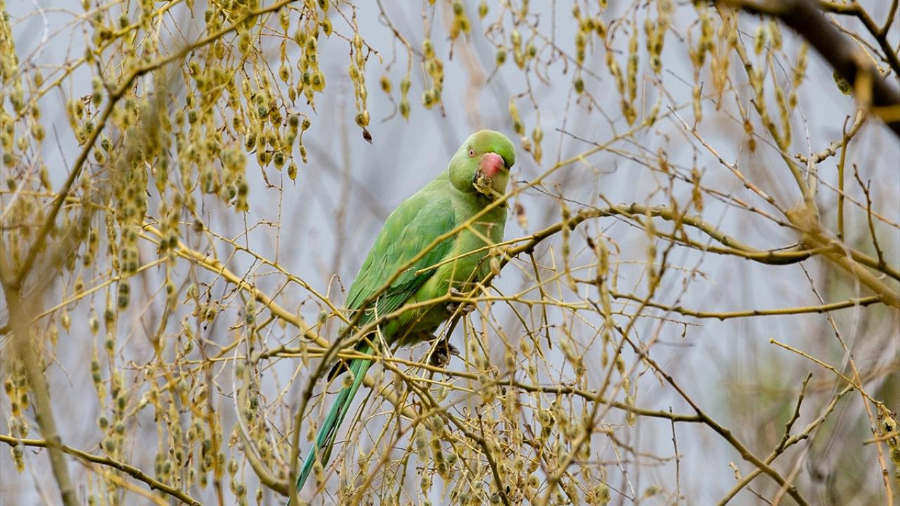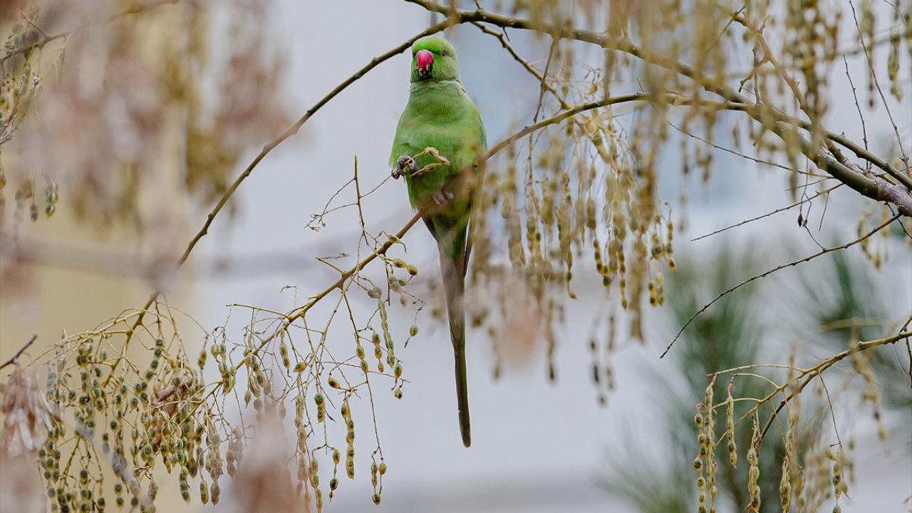 Ankara'nın çeşitli yerlerinde görülen ve kökeni tropikal Asya ile Afrika olan yeşil papağanlar, sessiz ve sakin ağaçlık yeşil alanları tercih ediyor.