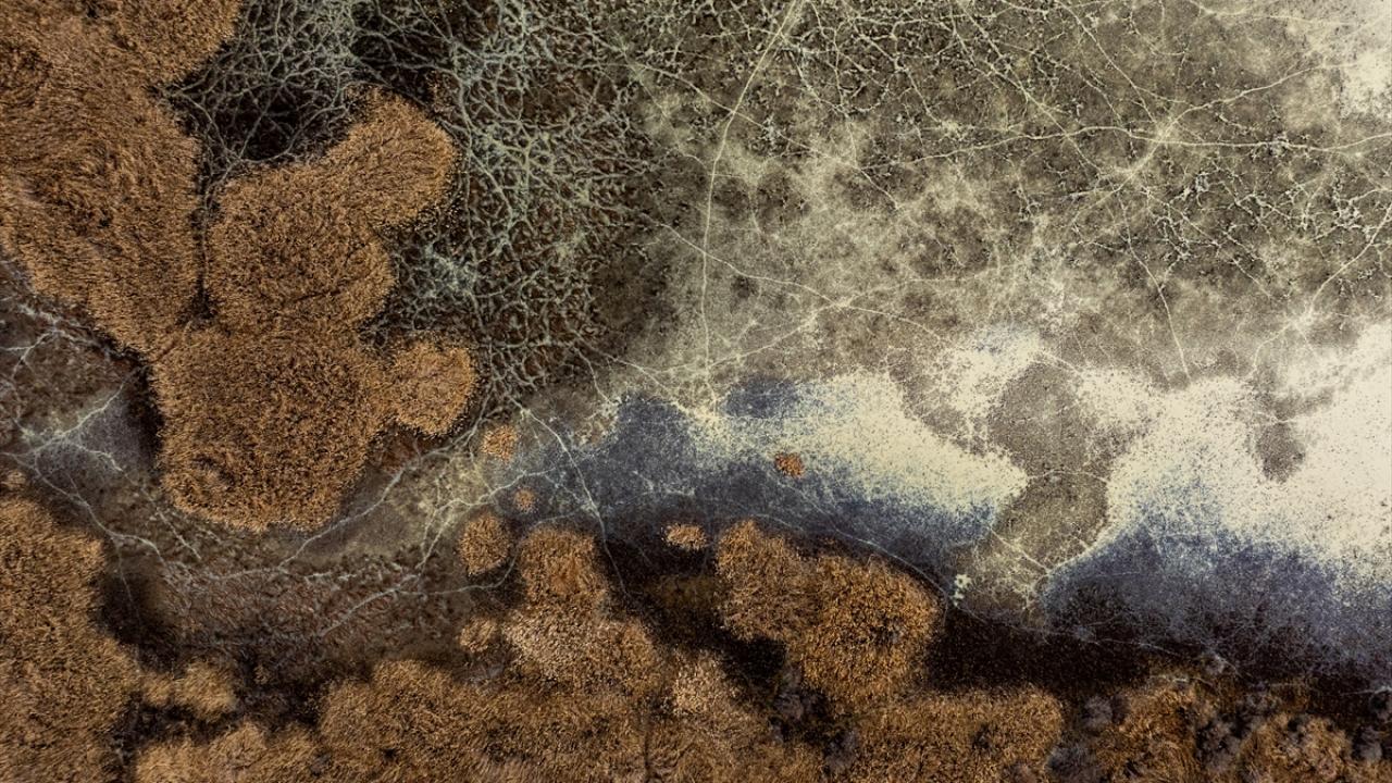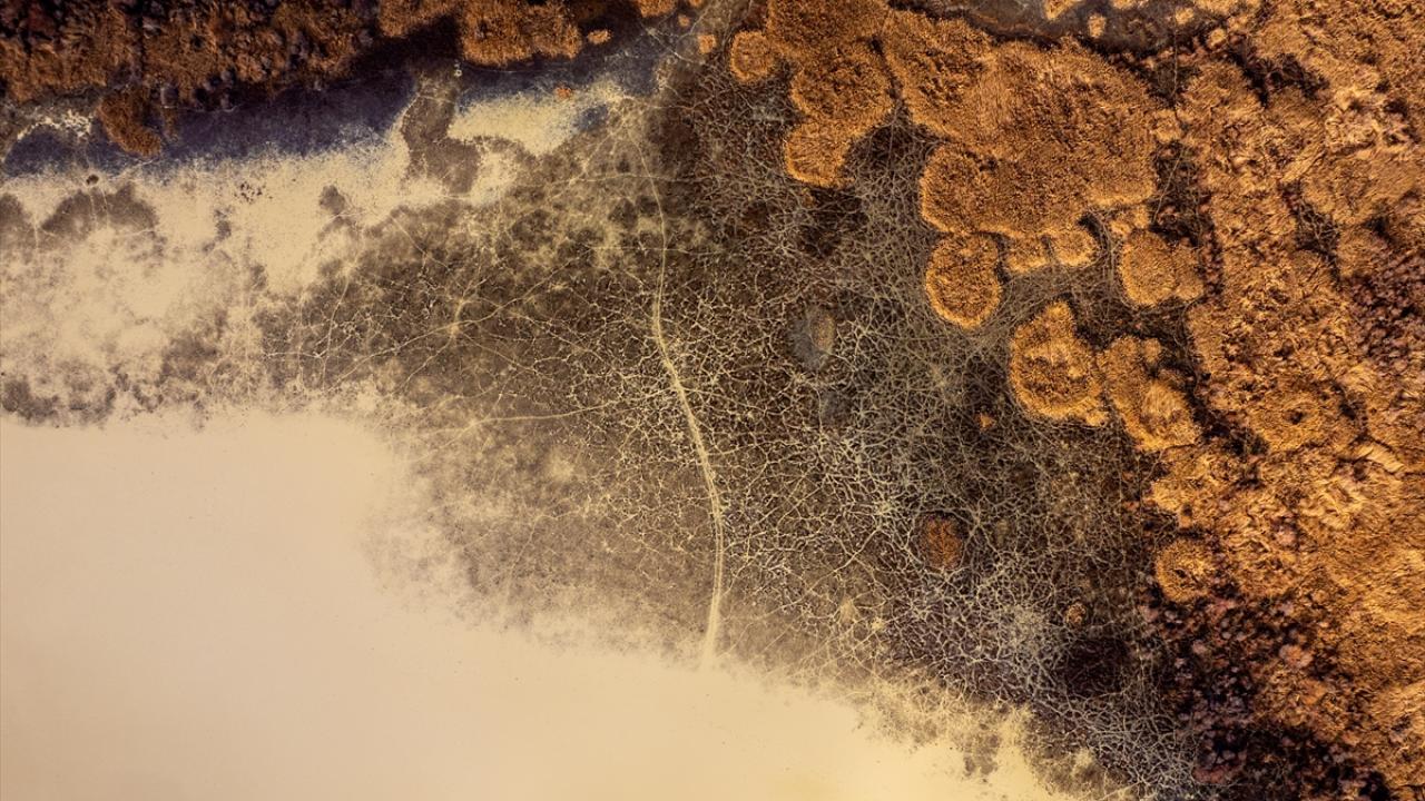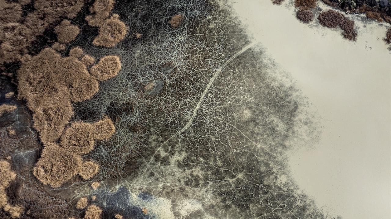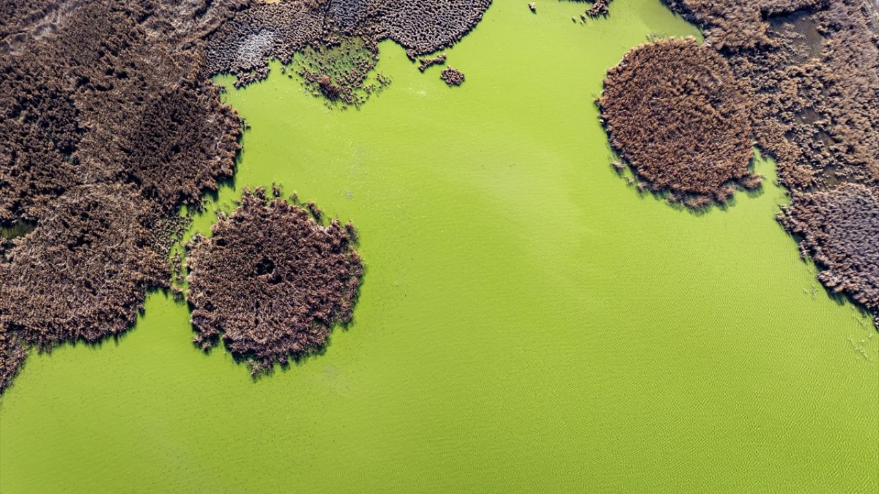 Bölgede suya bağlı doğal yaşam alanlarının daralması havadan görüntülendi.