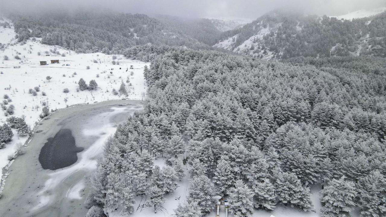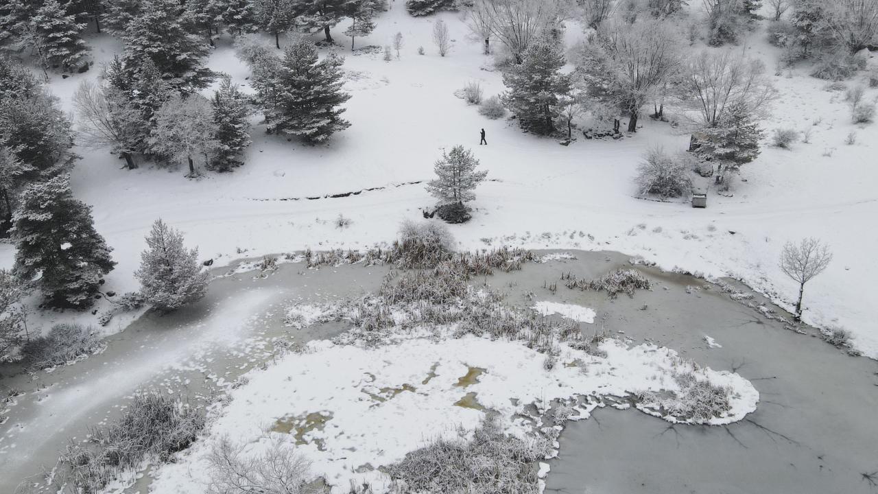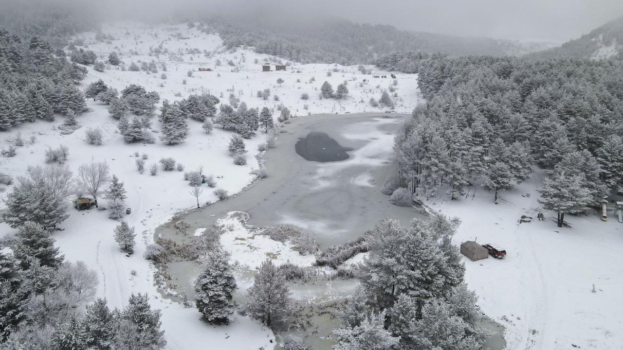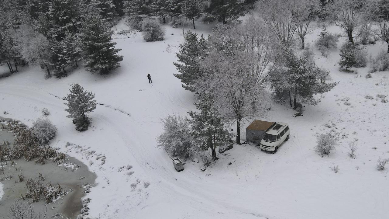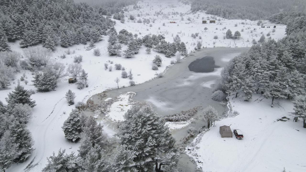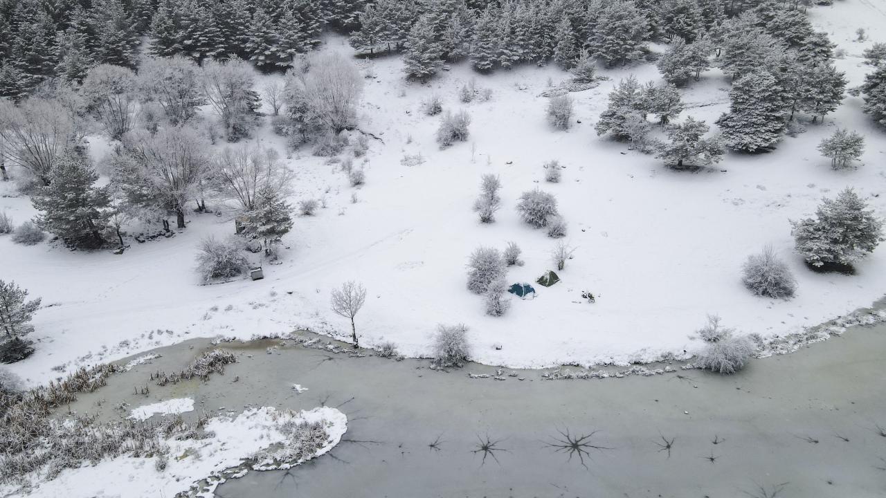Ankara'nın Kızılcahamam ilçesinde bulunan Salın Yaylası ve Işık Dağı Karagöl Jeositi Kamp Alanı, kar yağışı sonrası beyaz örtüyle kaplandı. Bölgede kamp kuran doğaseverler, karın tadını çıkardı.