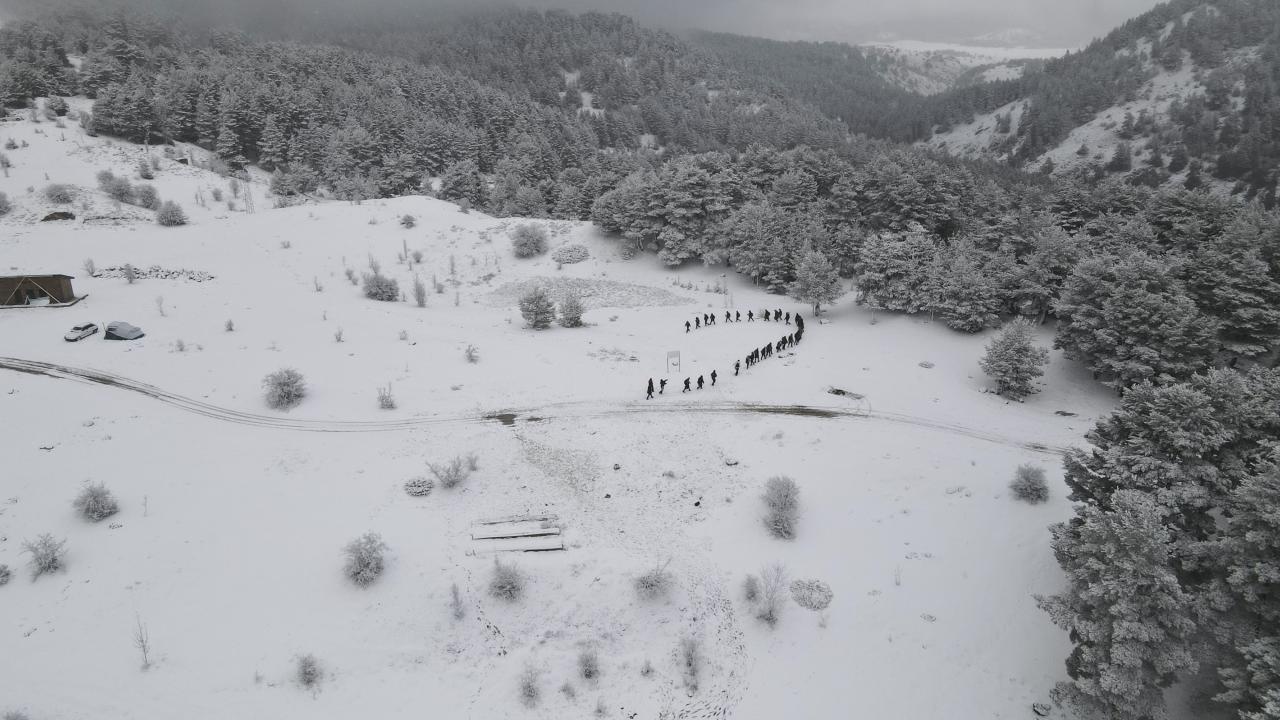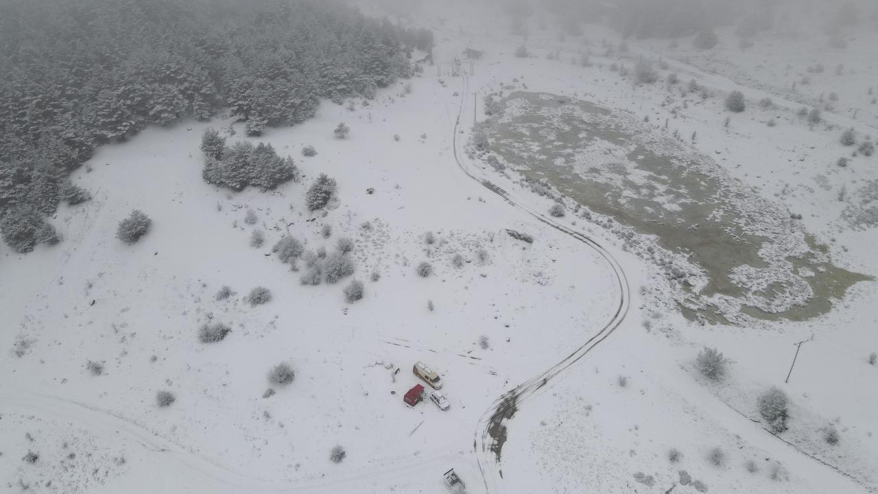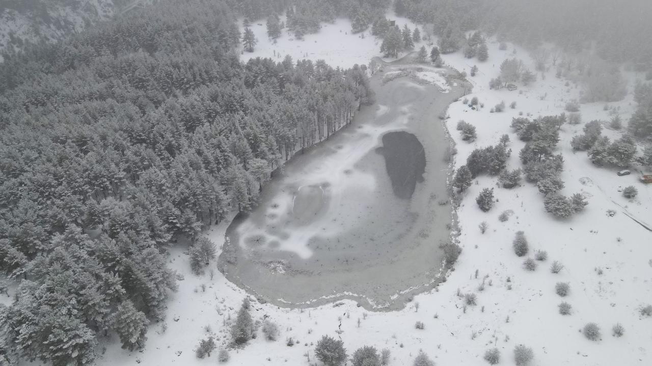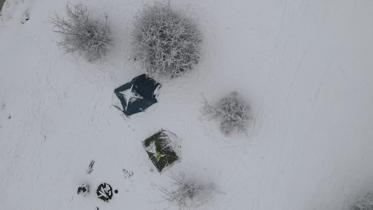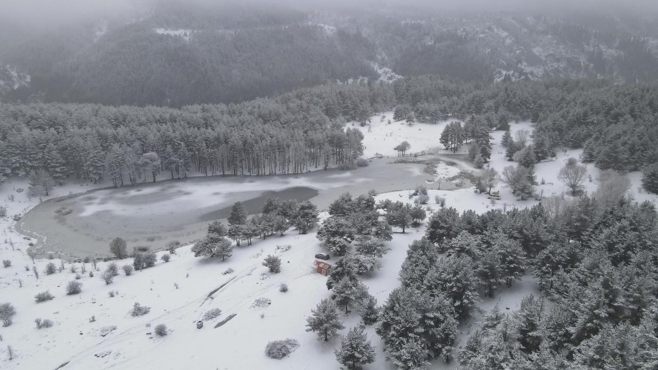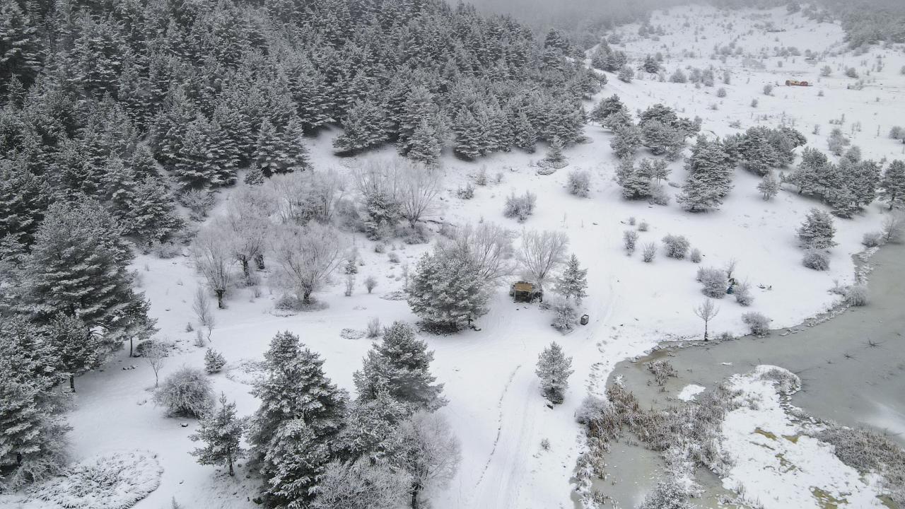 Ankara'nın Kızılcahamam ilçesinde bulunan Salın Yaylası ve Işık Dağı Karagöl Jeositi Kamp Alanı, kar yağışı sonrası beyaz örtüyle kaplandı. Bölgede kamp kuran doğaseverler, karın tadını çıkardı.
