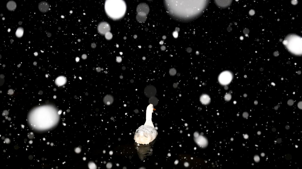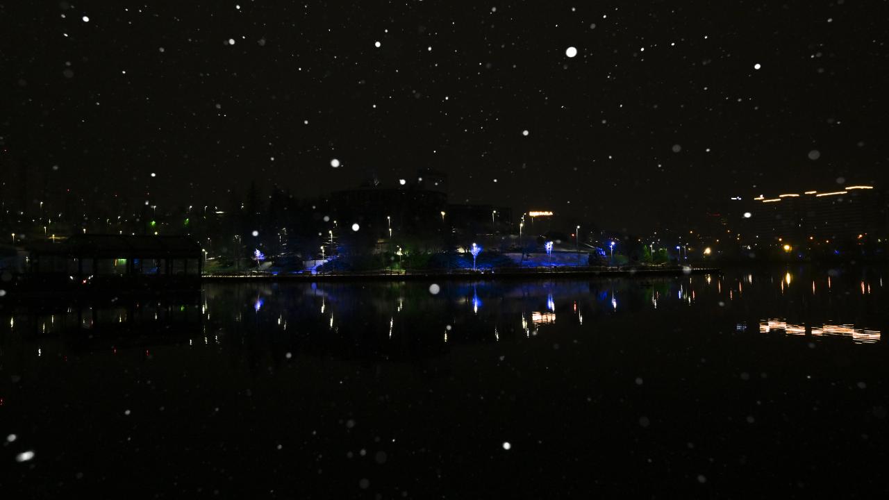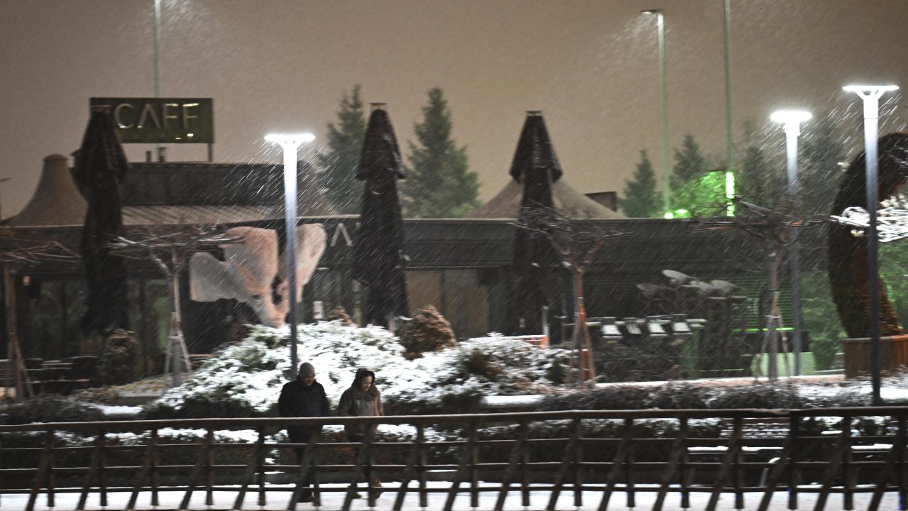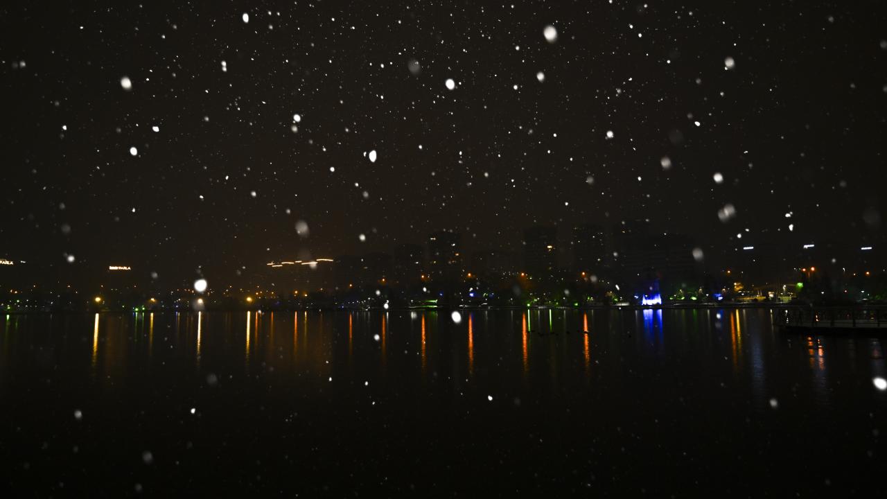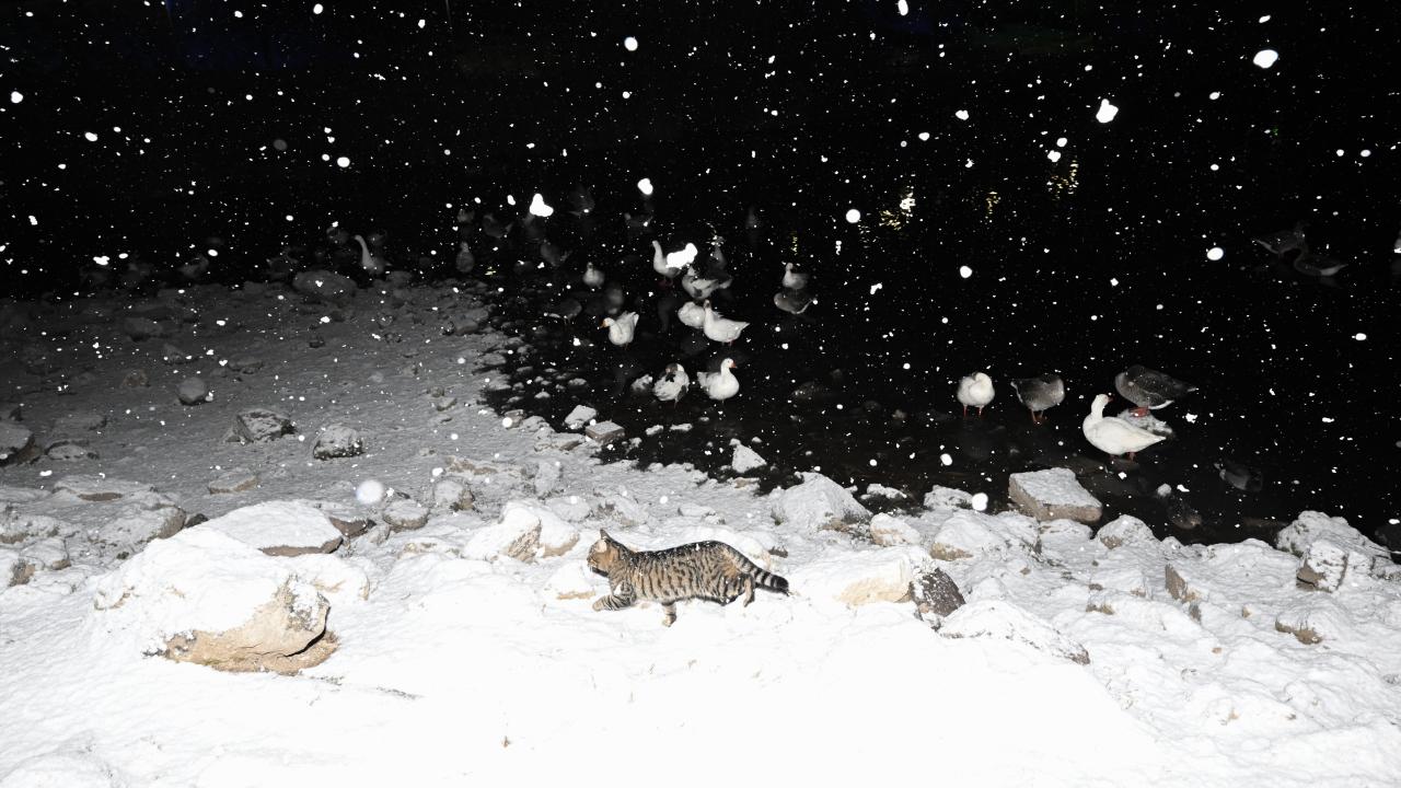 Yağış nedeniyle park, cadde, sokak ve çatılar beyaz örtüyle kaplandı.