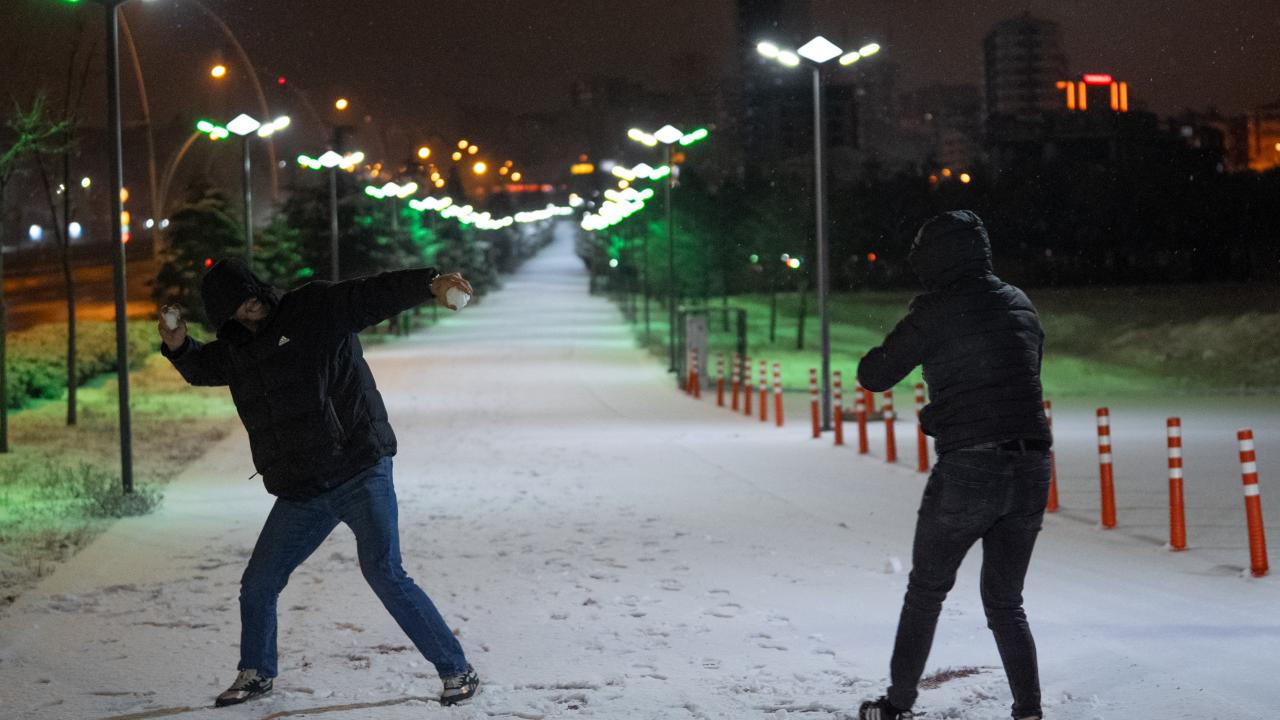 Eryaman`daki Göksu Parkı`nda ise vatandaşlar gece saatlerinde kartopu oynadı.