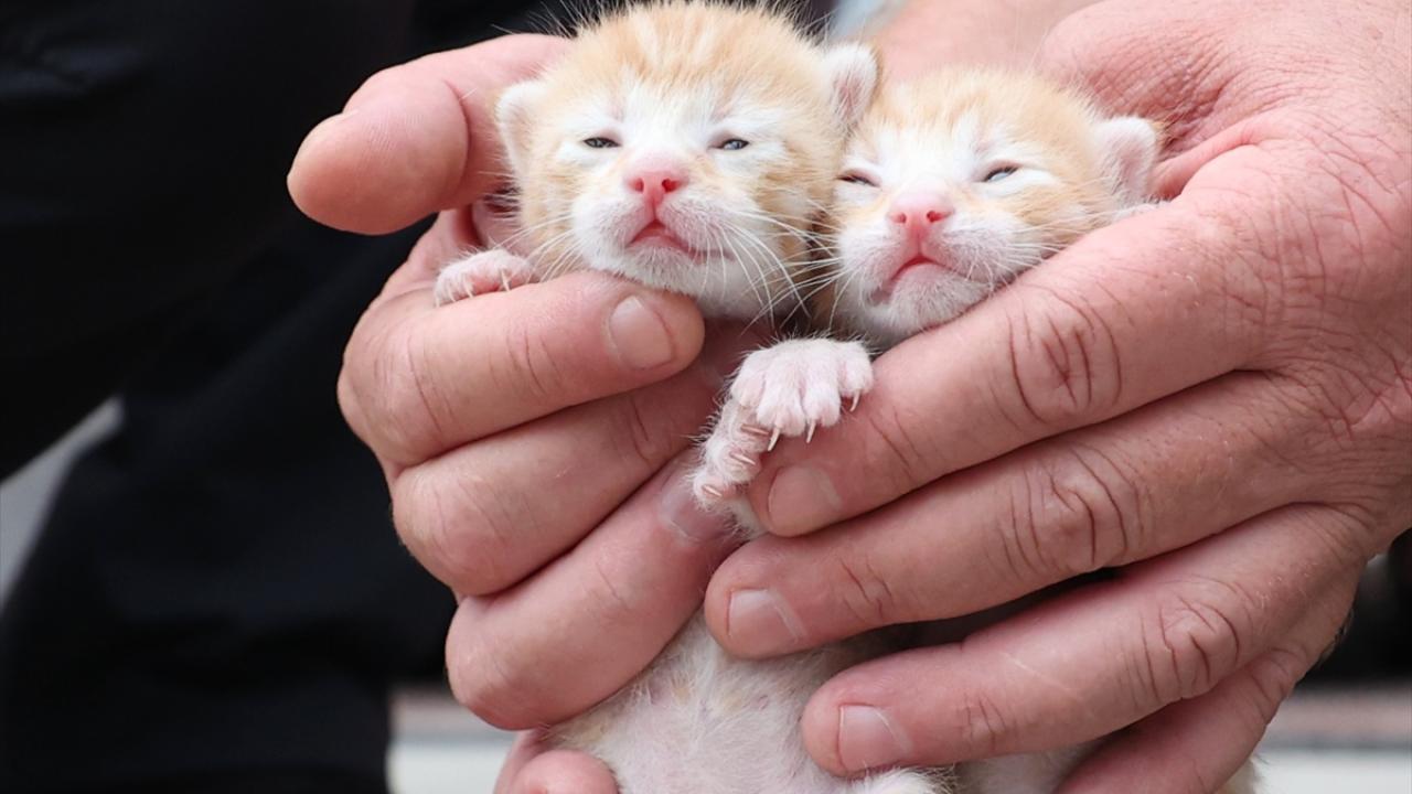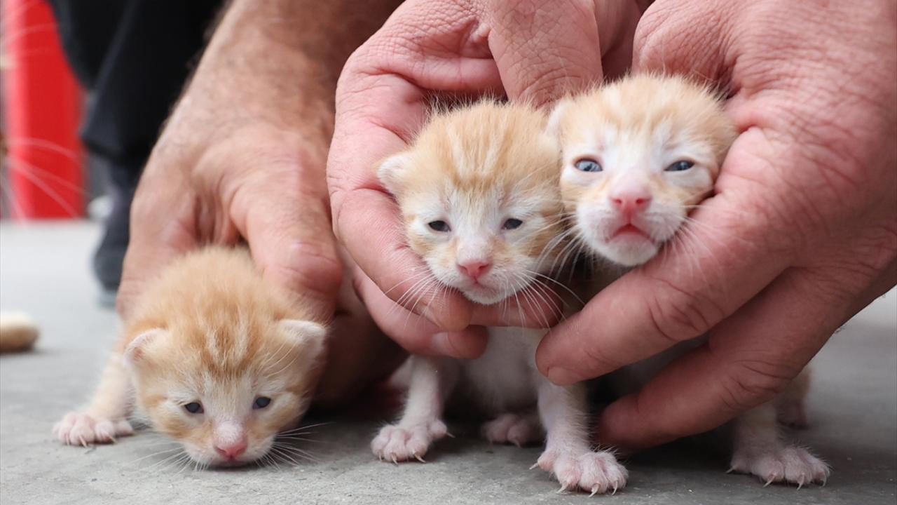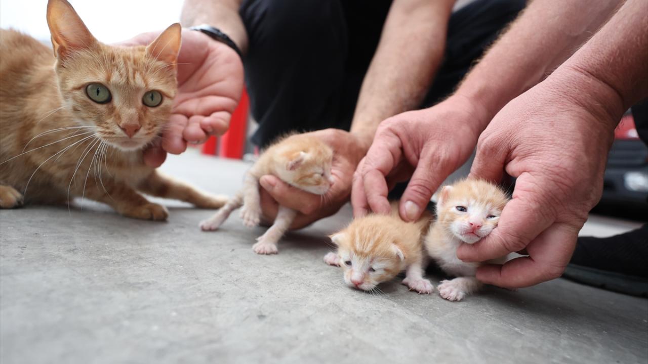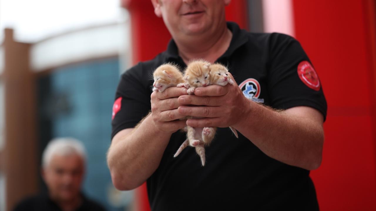 Anne kedi ile 3 yavrusuna itfaiyeciler sahip çıktı