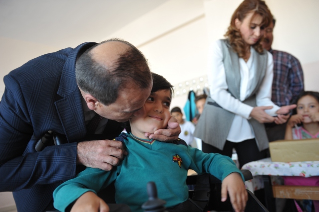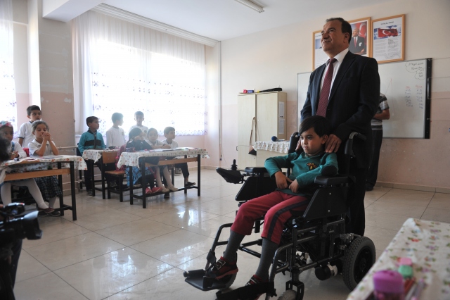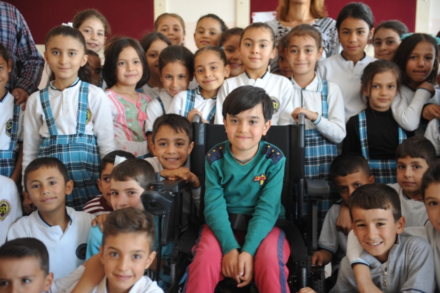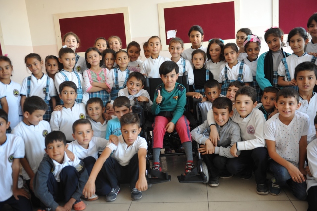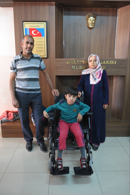 Gaziantep'te kas hastalığı nedeniyle yürüyemeyen ve okula annesinin kucağında giden ilkokul öğrencisi İbrahim Halil Kaya (8), Gaziantep Büyükşehir Belediyesinin girişimiyle akülü sandalyesine kavuştu. Büyükşehir Belediyesince alınan akülü tekerlekli sandalye, Gaziantep Büyükşehir Belediyesi Engelliler Daire Başkanı Yusuf Çelebi tarafından İbrahim Halil'e sınıfında teslim edildi.