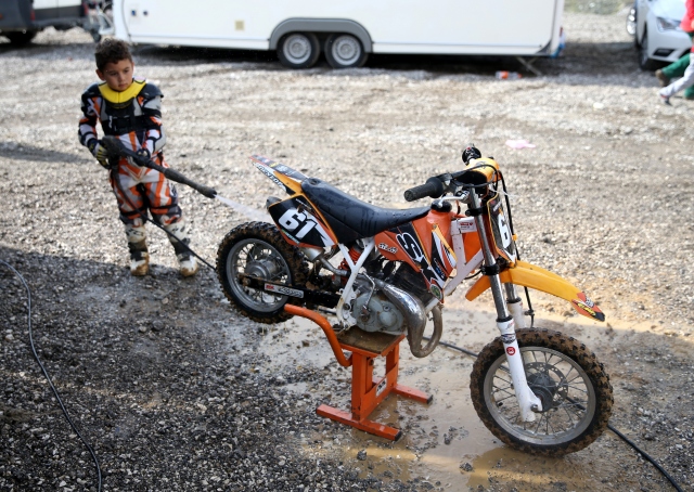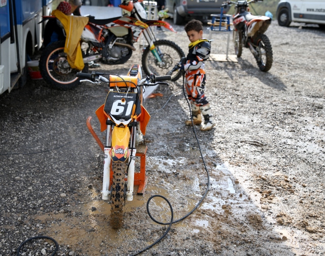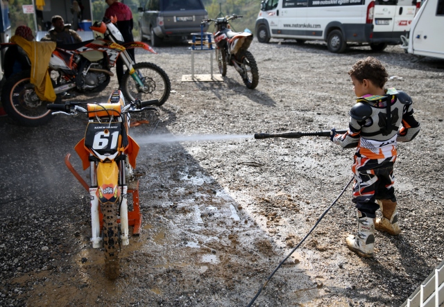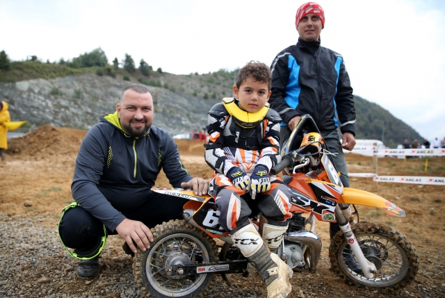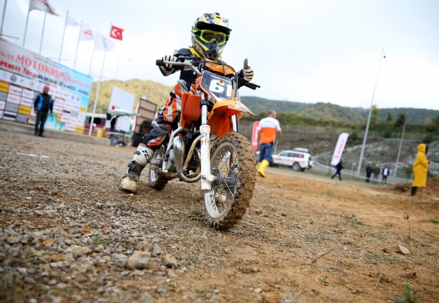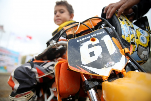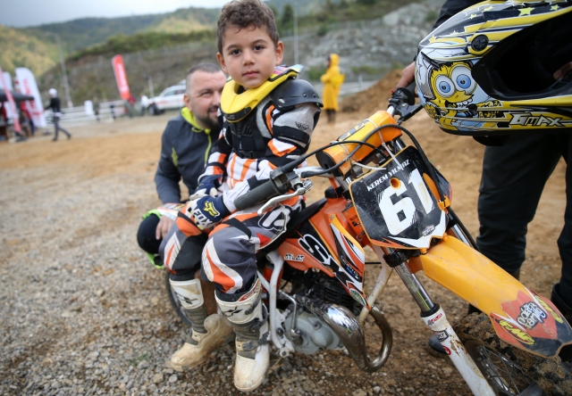 Düzce'nin Kaynaşlı ilçesinde düzenlenen Türkiye Motokros Şampiyonası'nın 5. ayağında 50 cc kategorisinde yarışan 4,5 yaşındaki Kerem Yılmaz, pistlerde sporseverlerin ilgisini çekiyor. Baba Alkan Yılmaz da minik sporcuyu yarışlara hazırlıyor.
