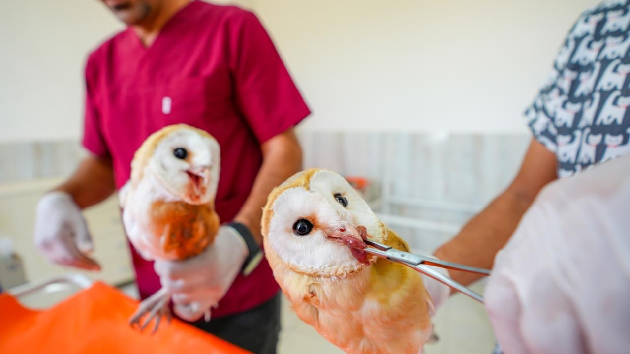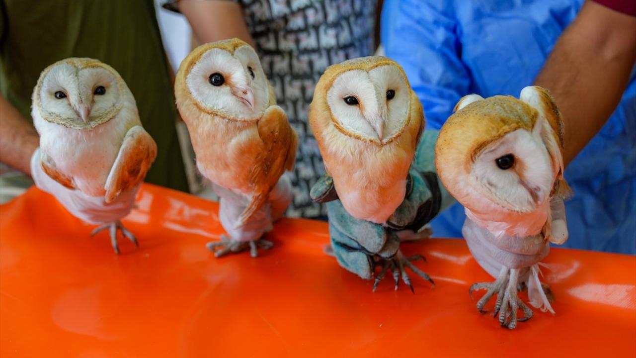 Diyarbakır'da anneleri ölmüş, açlık ve susuzluktan bitkin halde bulunan 4 yavru peçeli baykuş, Dicle Yaban Hayvanı Kurtarma ve Rehabilitasyon Merkezindeki özenli bakımın ardından doğal yaşam alanına bırakılacak.