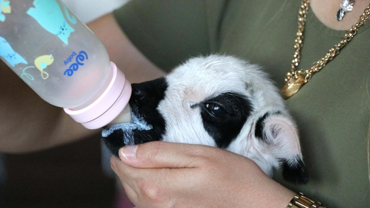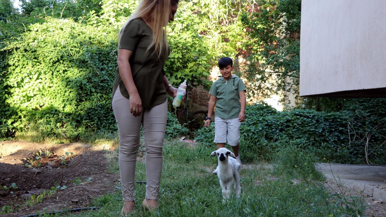 Yeni tip koronavirüs (Covid-19) ile mücadele sürecinde evlerine neşe katan Boncuk`a özenle bakan anne ve oğlu kuzuyu bezliyor, biberonla besliyor.