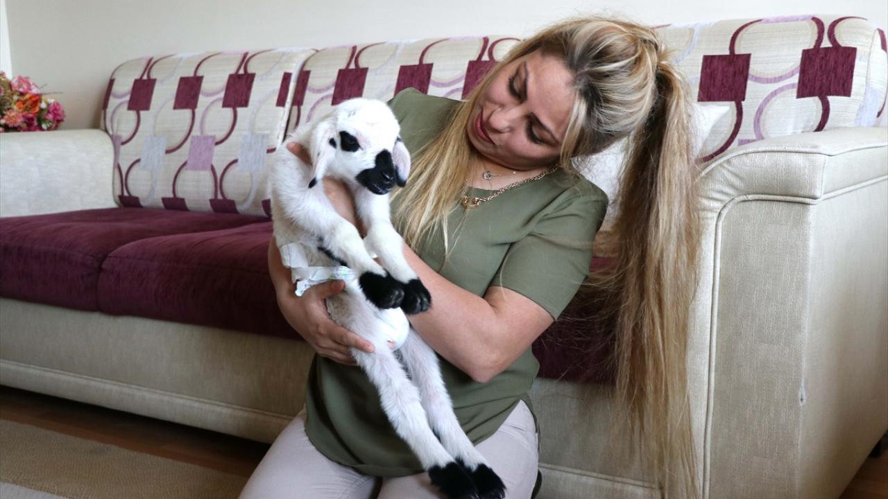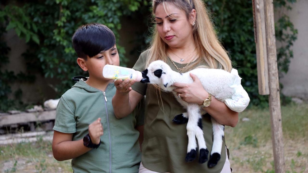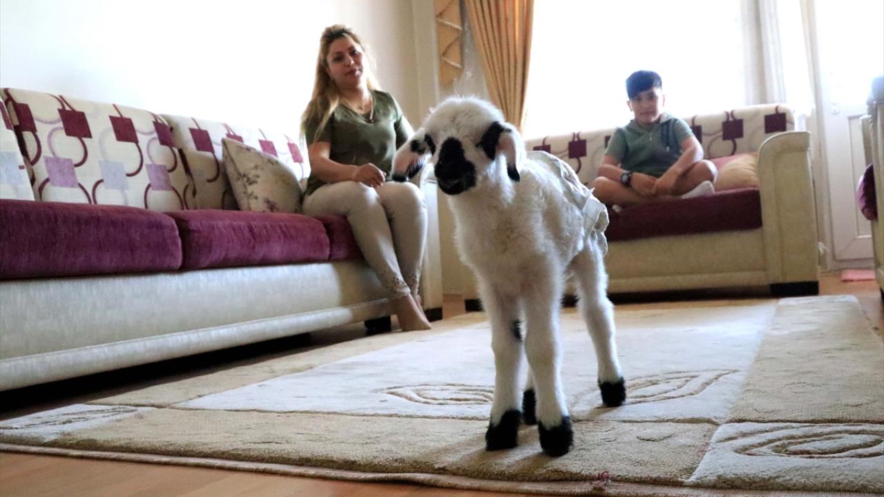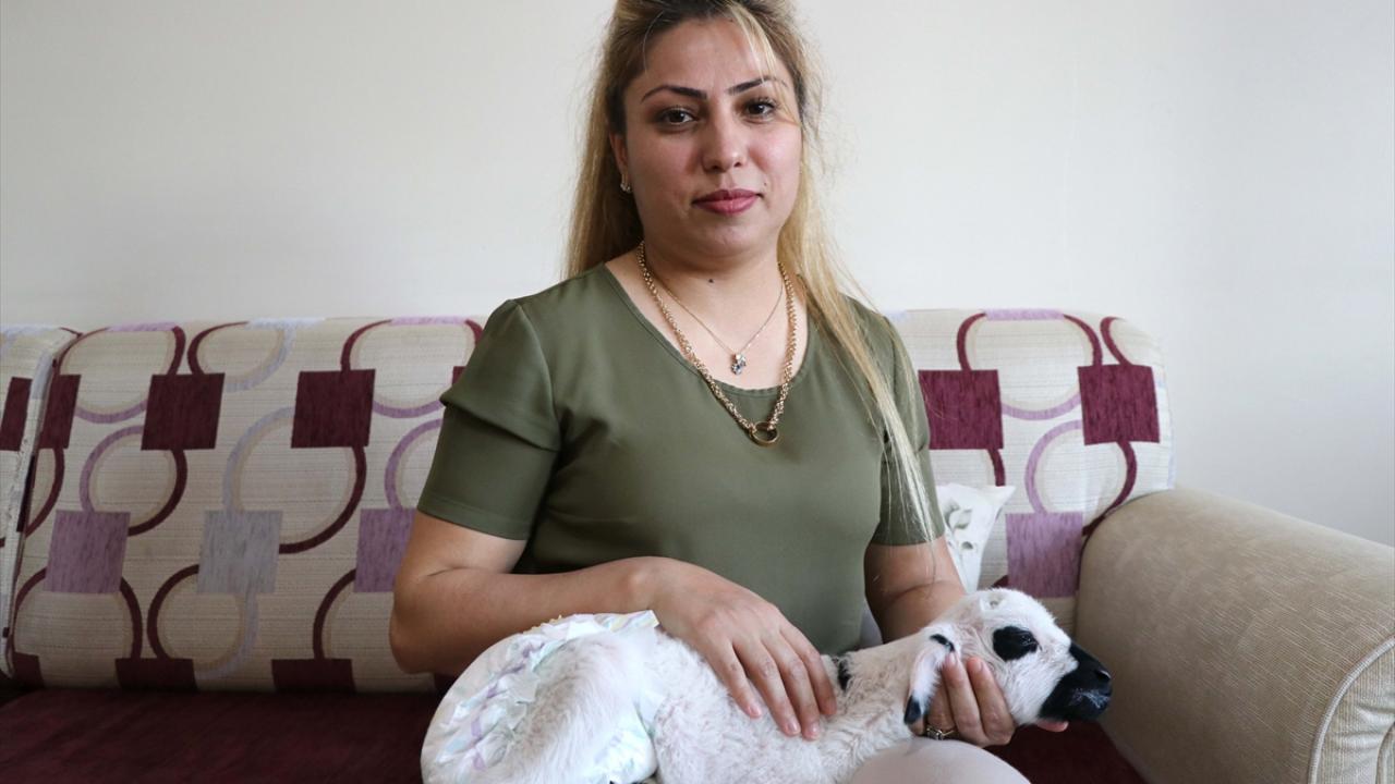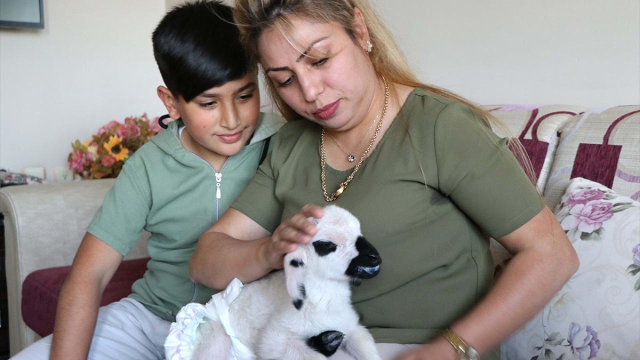 Elazığ'da doğum sonrası annesinin kabullenmemesi nedeniyle bakımsız kalan kuzuyu sahiplenen şehit eşi Şengül Genel ve oğlu Kaan Enis Genel, "Boncuk" adını verdikleri kuzuya evlerinde bebek gibi bakıyor.