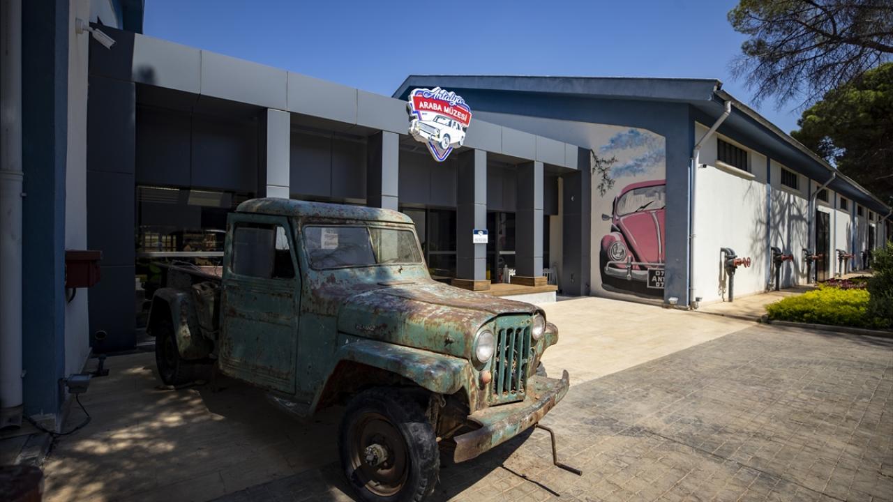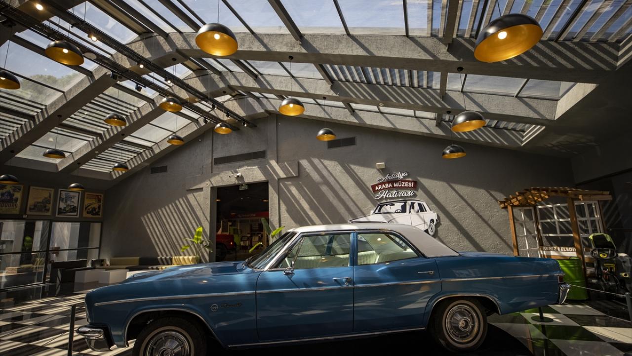 Antalya'da eski dokuma fabrikasının pamuk ambarında oluşturulan araba müzesinde sergilenen 70 klasik araç, ziyaretçilerini zamanda yolculuğa çıkarıyor.