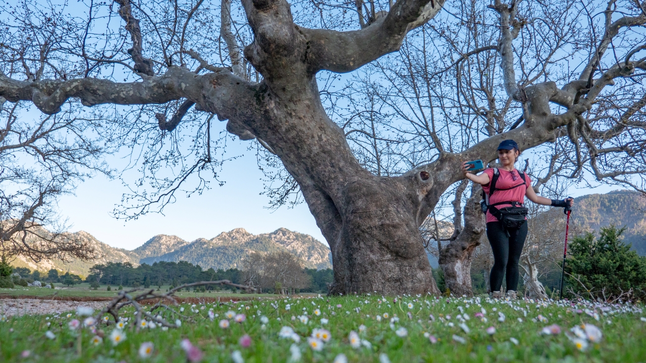 Bölgeyi gezen doğa tutkunları Asırlık çınarlarla birlikte bol bol fotoğraf çektiriyor, ağaçlara temas ederek geçmişe bir yolculuğa çıkıyor.