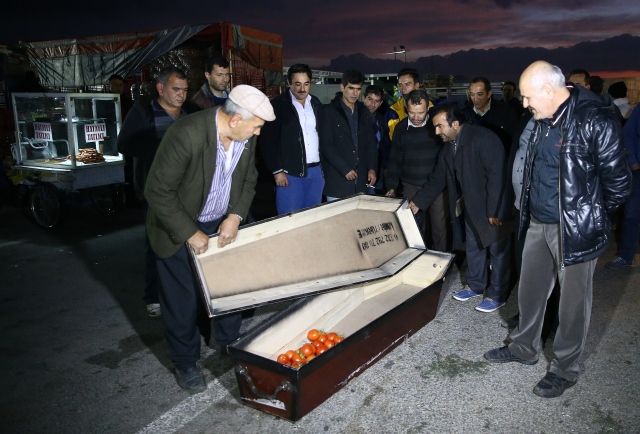 Antalya Toptancı Hali'nde oda, dernek başkanları, çiftçiler ve komisyoncular, domateste fiyatın düşük, girdi maliyetlerinin yüksek olmasını protesto etti. Sabaha karşı halde buluşan oda, dernek başkanları, üretici ve komisyoncular basın toplantısı düzenledi. Basın toplantısı sırasında bir grup üretici alana tabut getirdi. Toplantının ardından çiftçi İsa Yıldırım, cübbe, sarık giyip cenaze namazı kıldırır gibi yaptı.