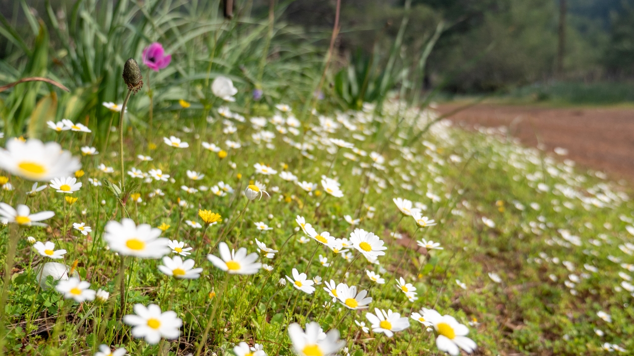 Bazen küçük kümeler halinde bazen tarlalar şeklinde Antalya`nın her yerinde rastlanan papatyalar doğaya güzellik katıyor.