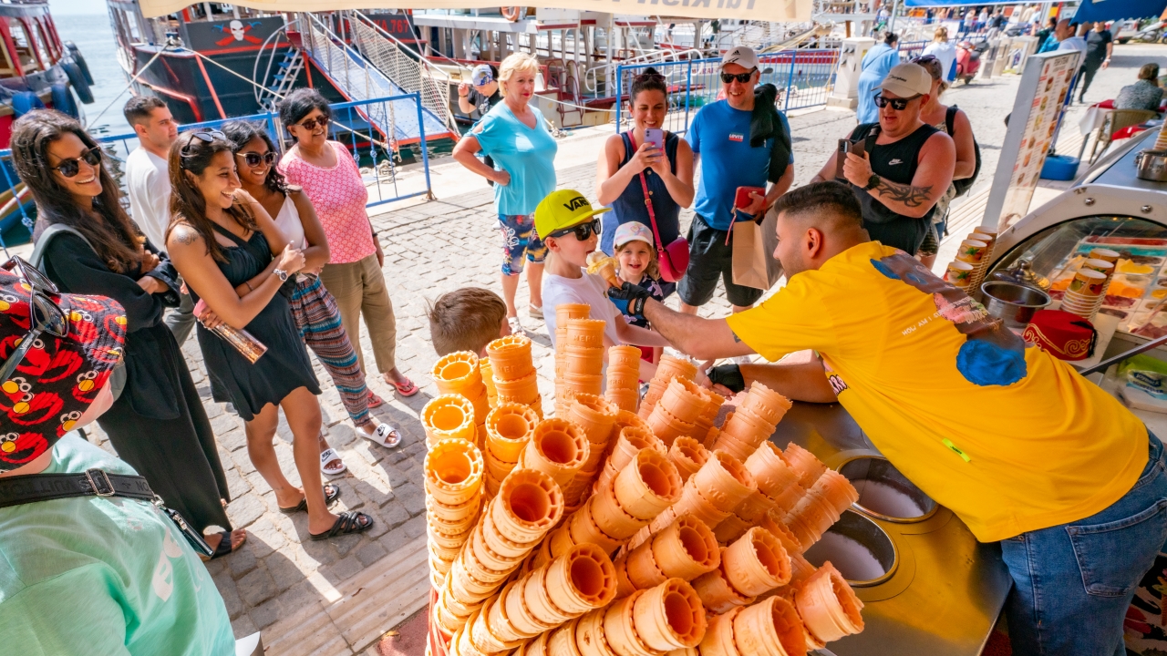 Kaleiçi`nde yürüyüş ve alışveriş yapan, tekne turuna çıkan, şehrin güzel noktalarında bol bol fotoğraf çektiren yabancı konuklar yerel lezzetlere de ilgi gösteriyorlar.