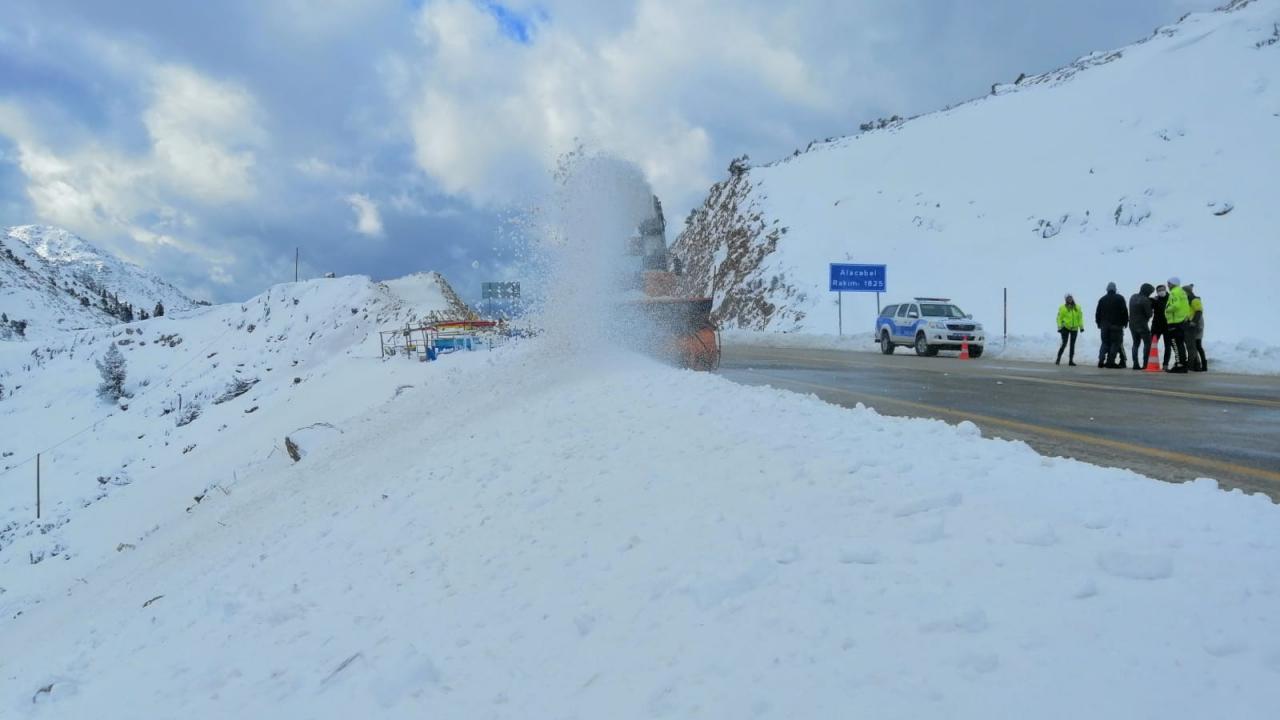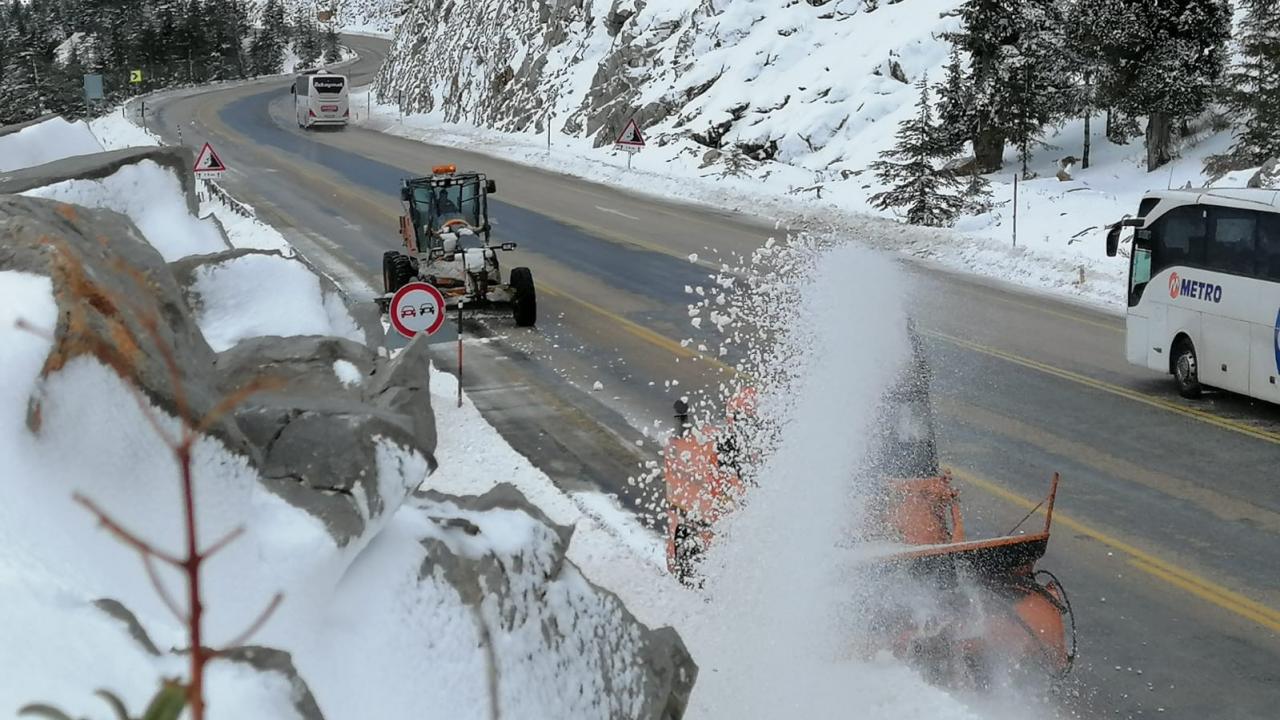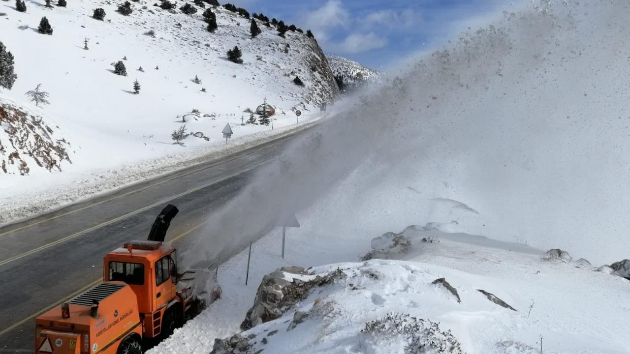 Kara yolları ekipleri yolda çalışmalarını sürdürüyor.