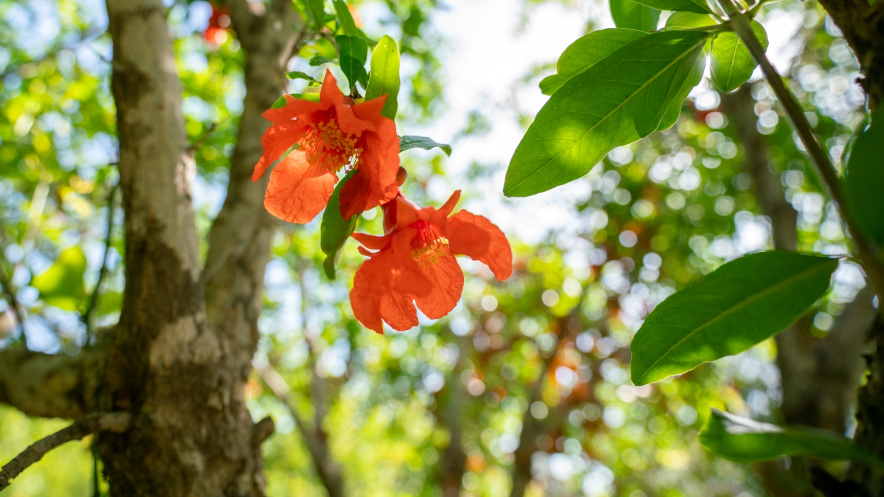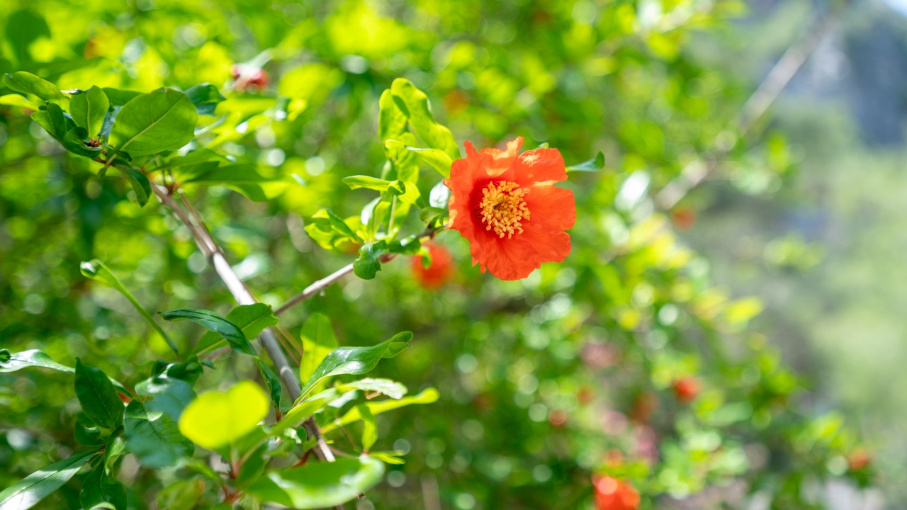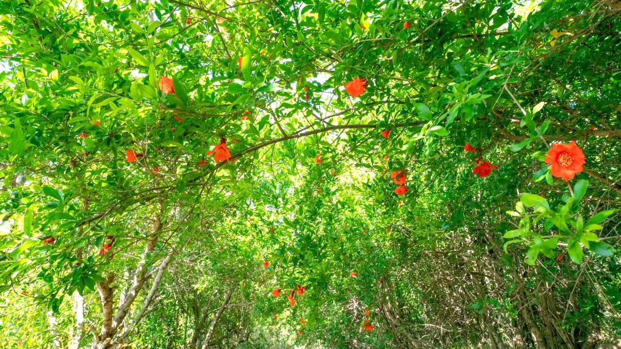 Nisan ayıyla birlikte çiçek açmaya başlayan nar ağaçları bahçeleri renklendirirken yol kenarlarını güzelleştiriyor.