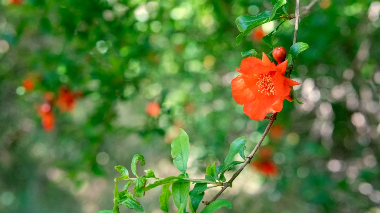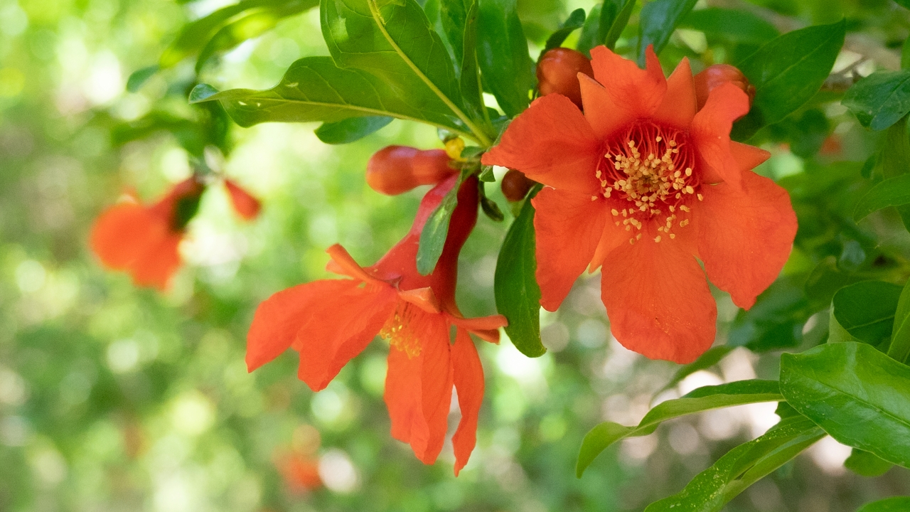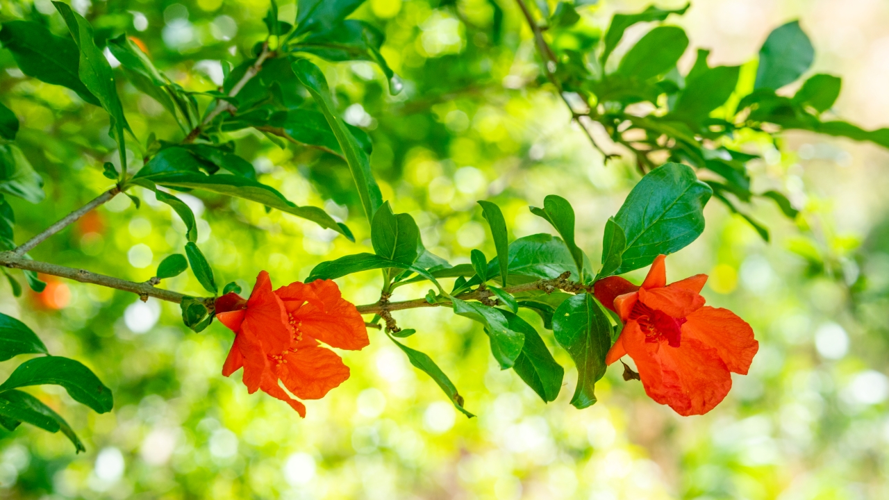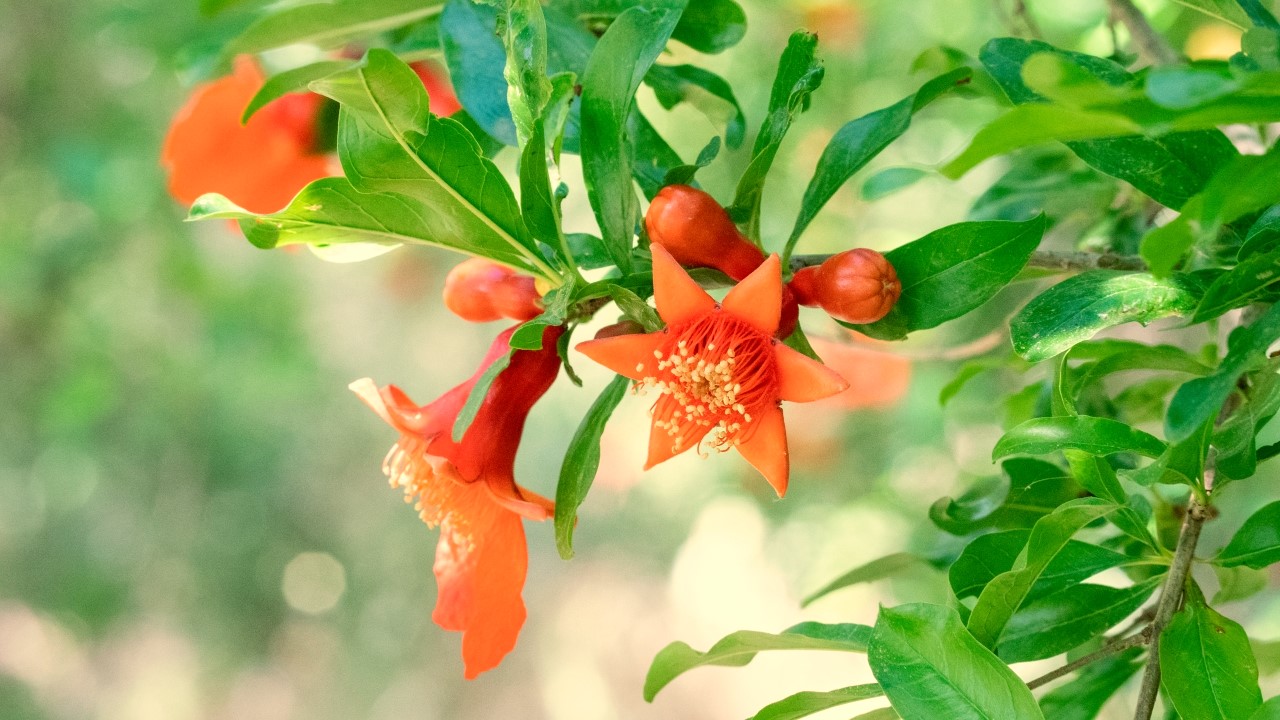 Nisan ayıyla birlikte çiçek açmaya başlayan nar ağaçları bahçeleri renklendirirken yol kenarlarını güzelleştiriyor.