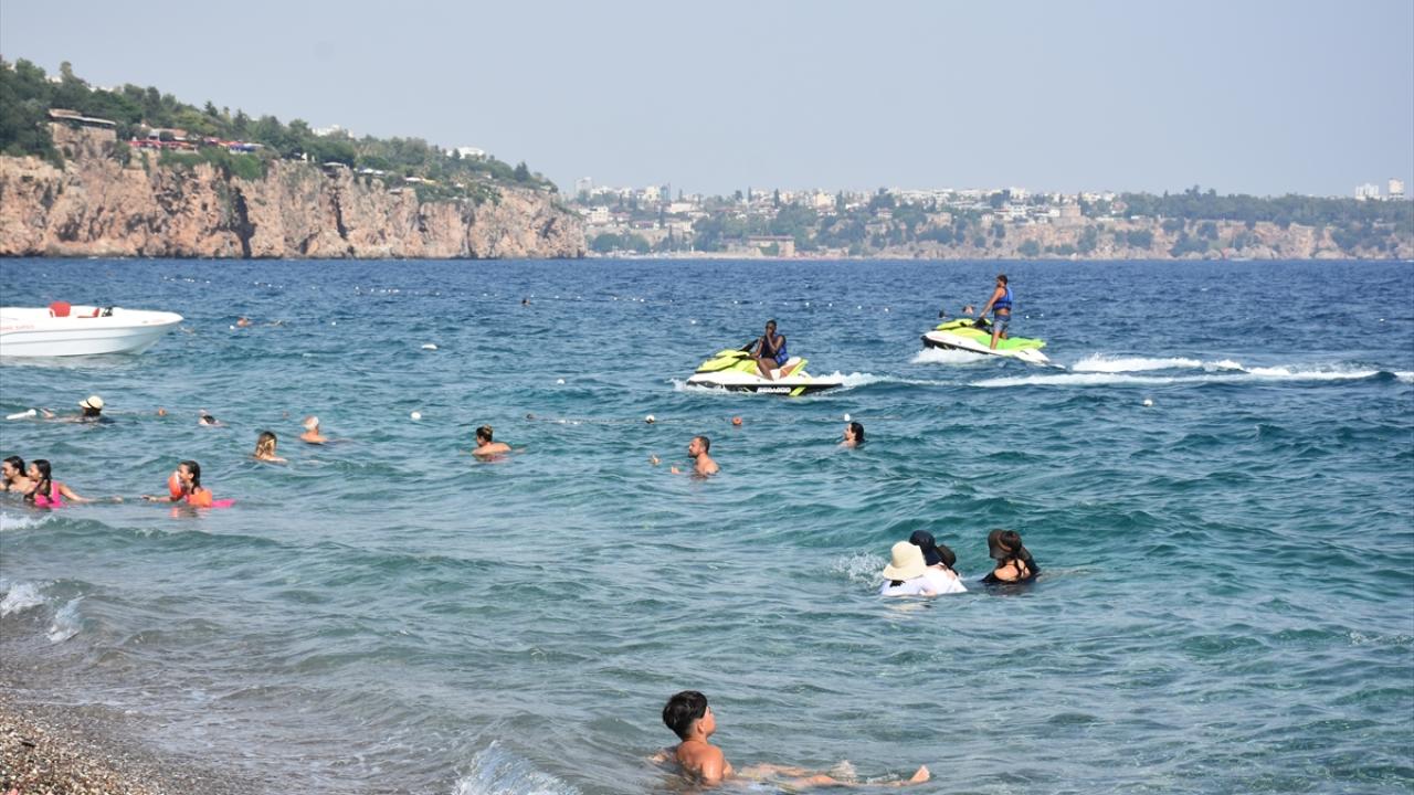Hava sıcaklığının 32 derece kaydedildiği kentte Antalyalılar ve turistler, plajlarda, park ile bahçelerde hareketliliğe neden oldu. Bazıları da denize girip yüzerek serinlemeye çalıştı.