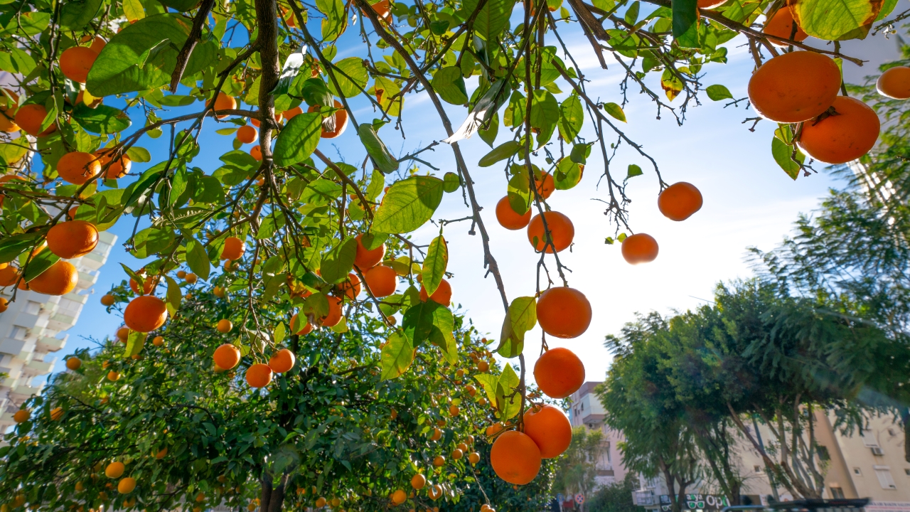 Özellikle ana caddelerdeki orta refüjlerde yüzlerce metre boyunca sürücülere eşlik eden bu ağaç portakal ve mandalinaya benzeyen bir meyve vermekte.