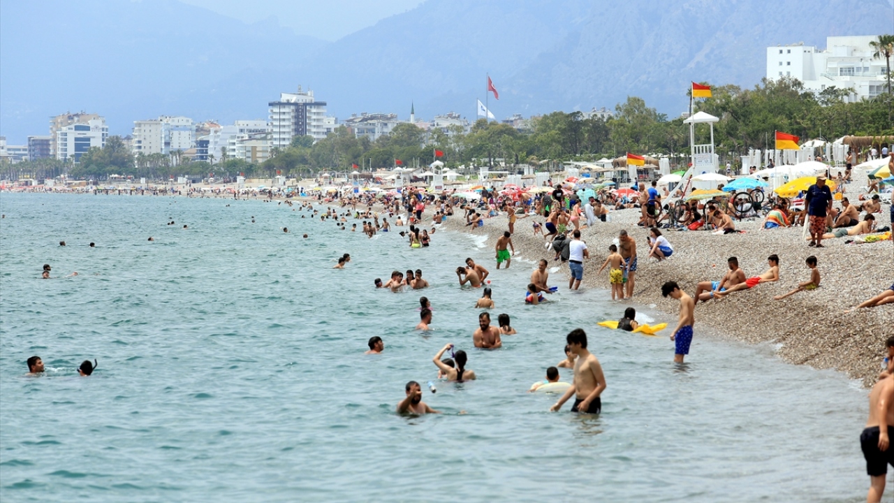 Havanın 25, deniz suyu sıcaklığının 25 derece ve nem oranının yüzde 60 ölçüldüğü Antalya'da, yeni tip koronavirüs salgınıyla mücadelede normalleşme dönemine girilmesiyle kısıtlamaların kaldırıldığı Konyaaltı Sahili'nde, hafta sonu yoğunluğu yaşandı.